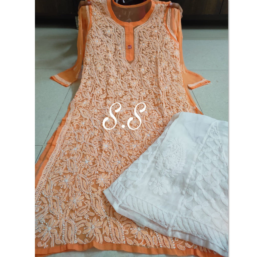 ๐ *Bottom Fabric * : Georgette with chikankari Embroidery thread. ( *Fully Stitched*)ย