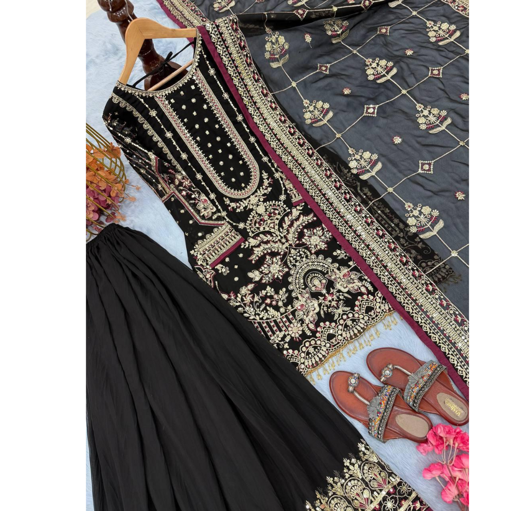 👗Launching New 🦋 Đěsigner Party Wear Look Pure Heavy Faux Georgette Top Palazzo & Dupatta Set👗