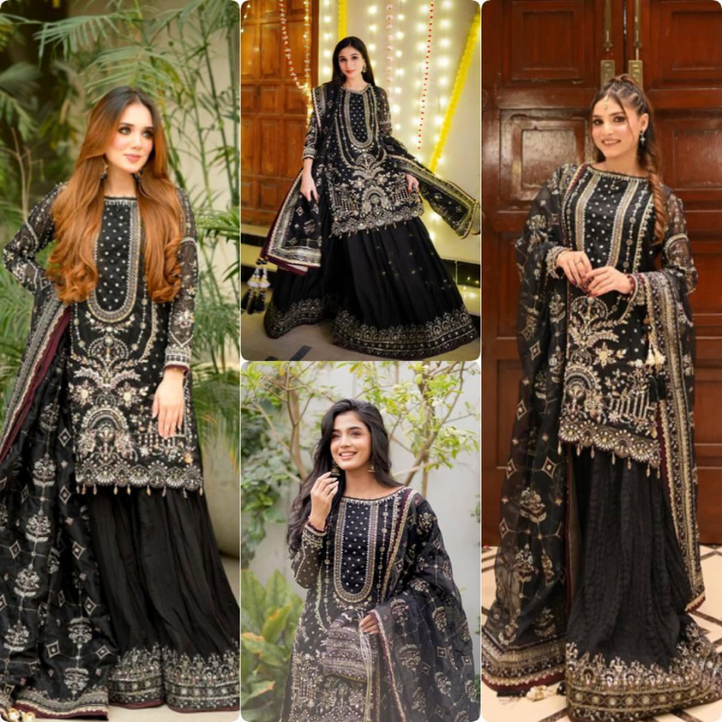 Top Fabric :Heavy Faux Georgette With Heavy Embroidery 5 mm Sequence Work With Rivet Moti Work With Sleeves With Fancy Latkan Border