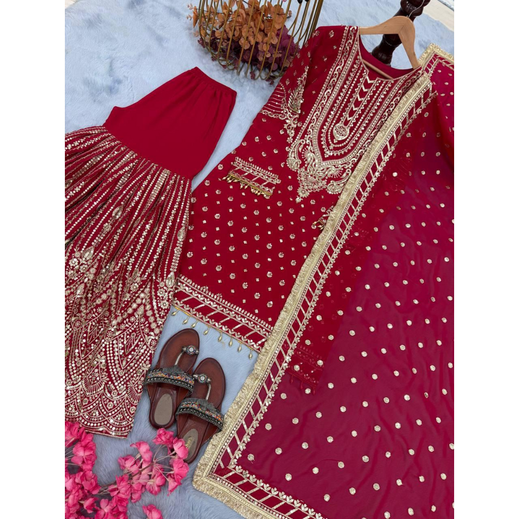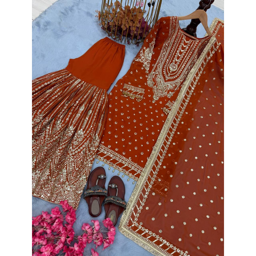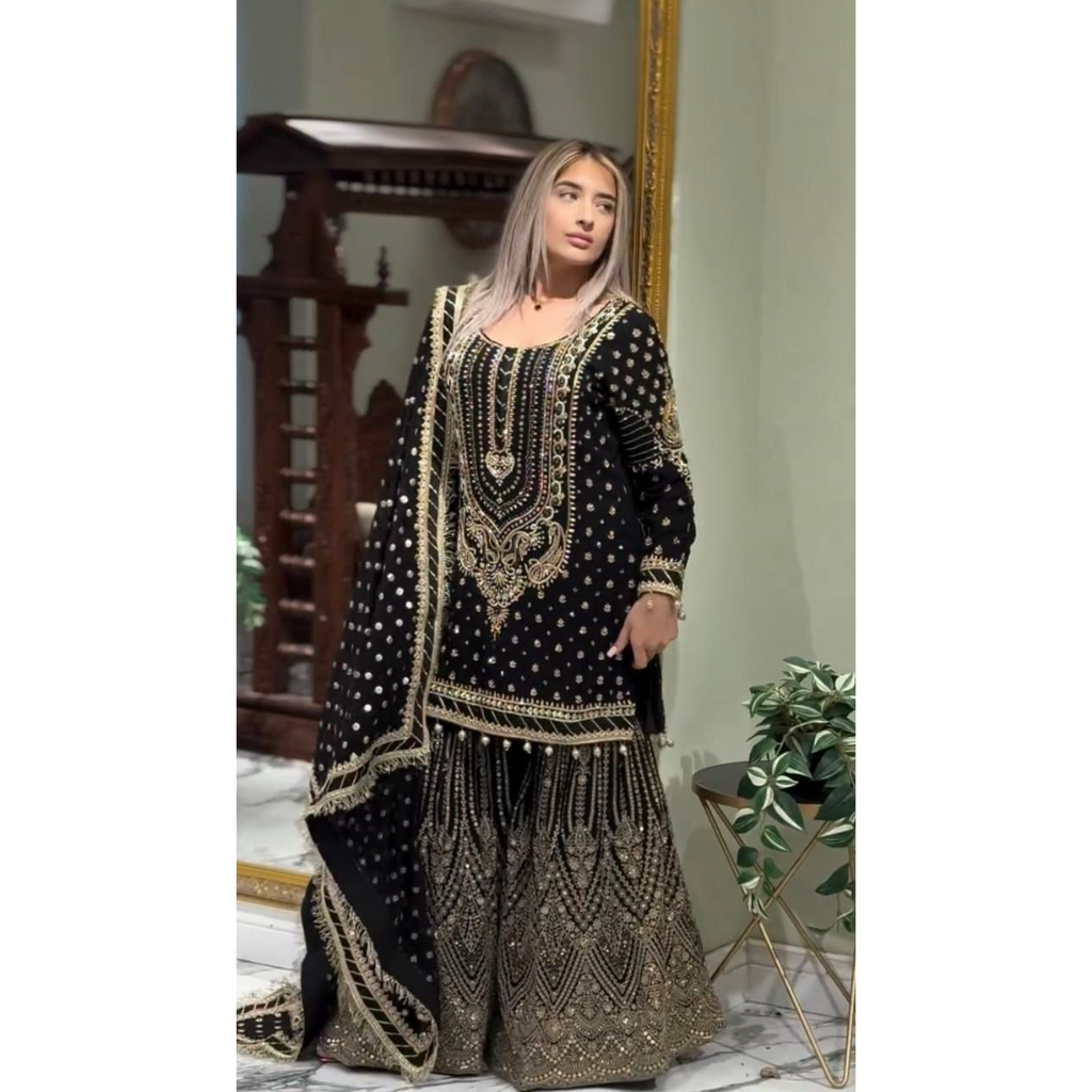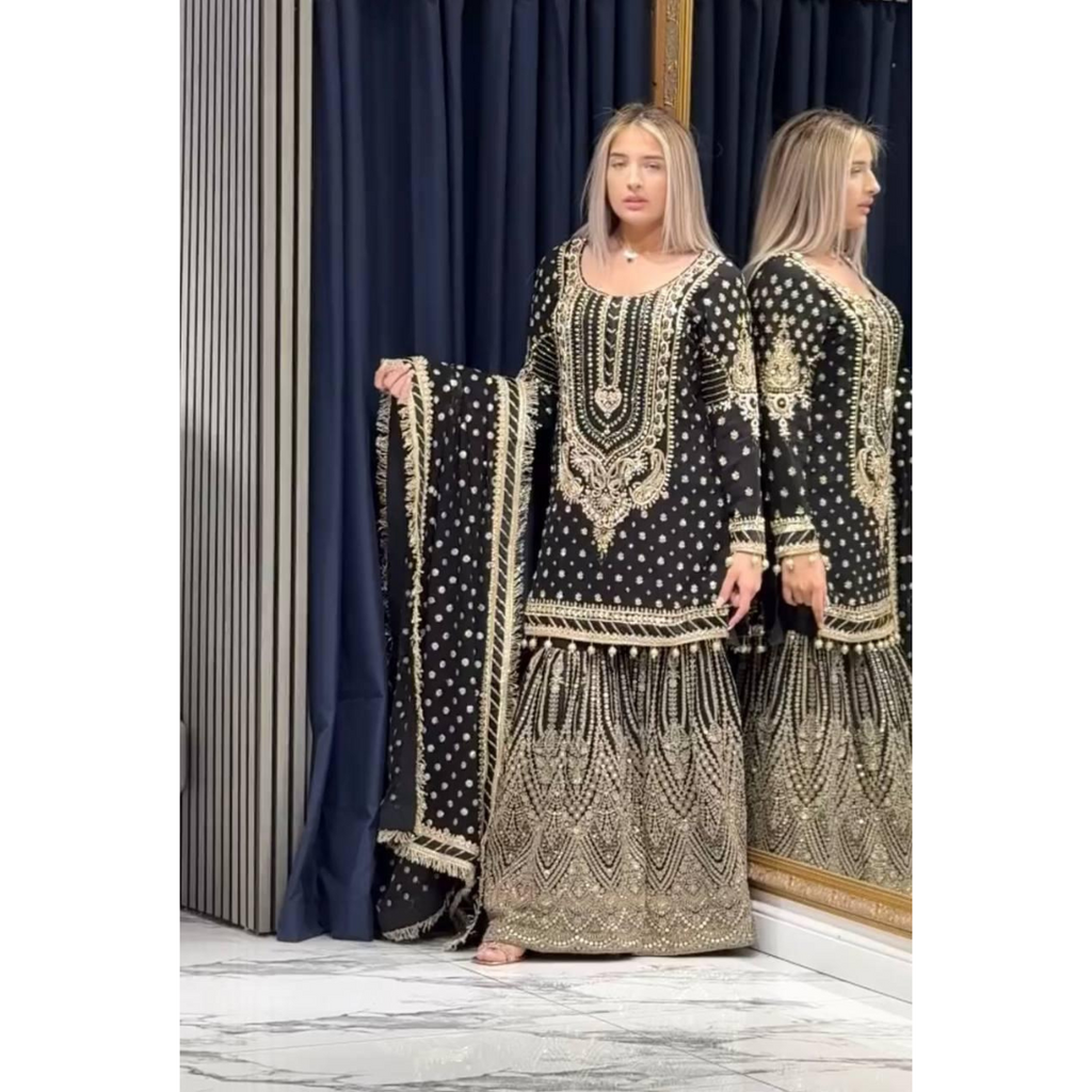 *Palazzo Fabric*: Heavy Faux Georgette With Embroidery 5 mm Sequence Work