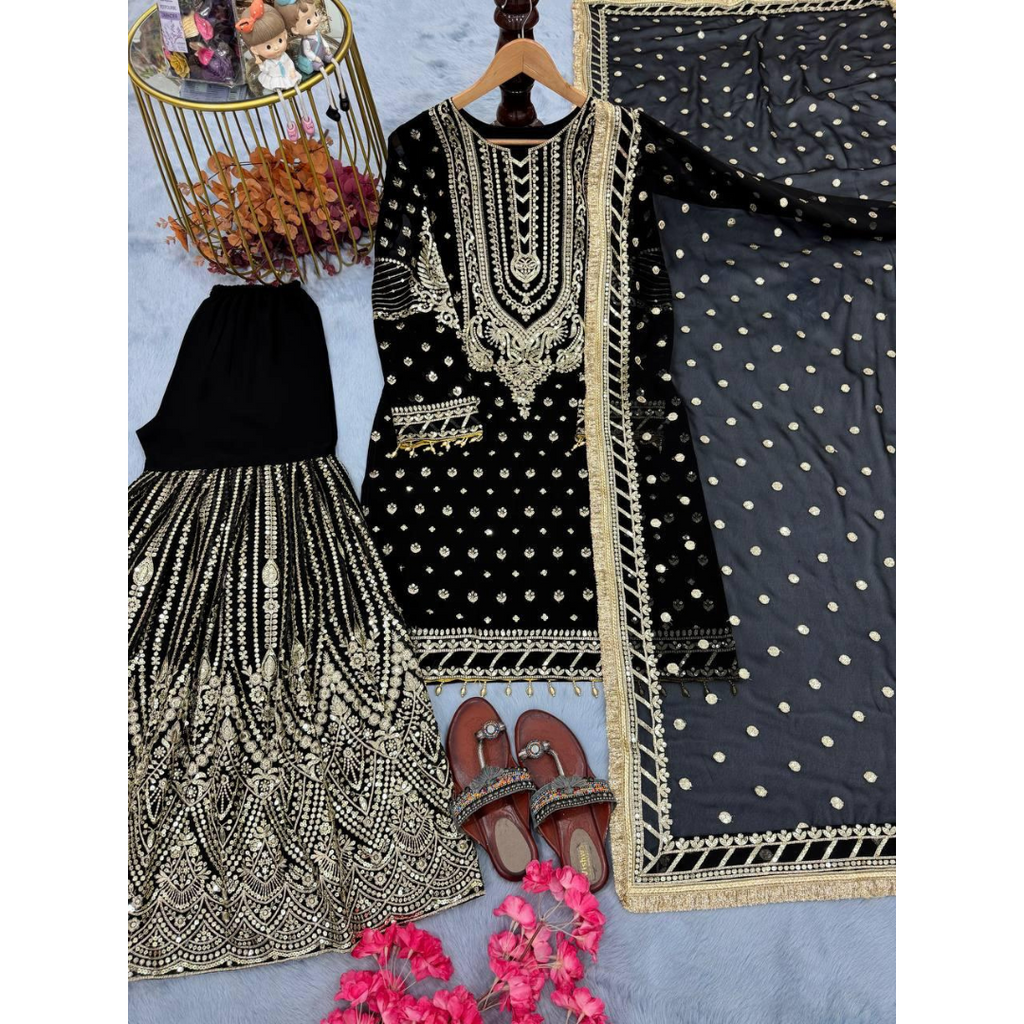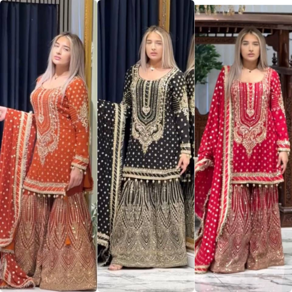 *Top Fabric* :Heavy Faux Georgette With Embroidery 5 mm Sequence Work With Fancy Latkan Border With Sleeves
