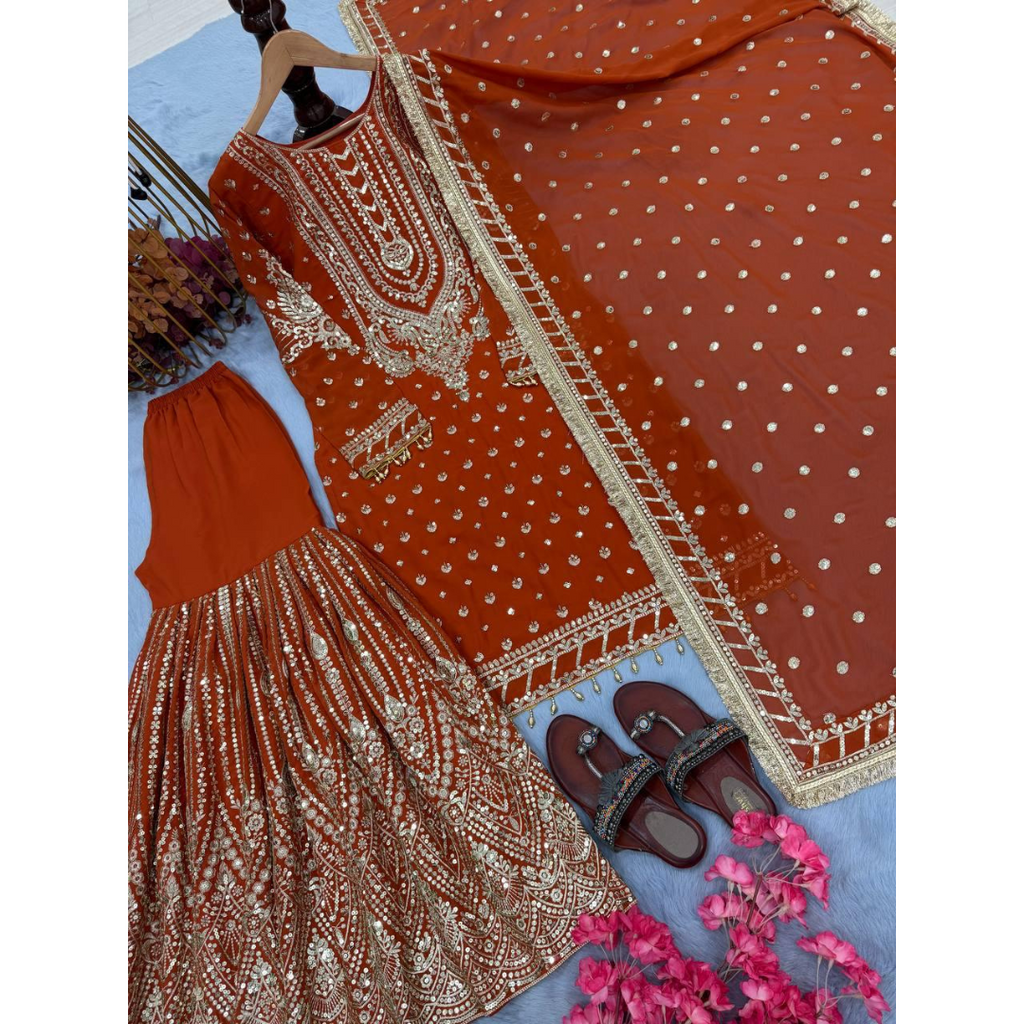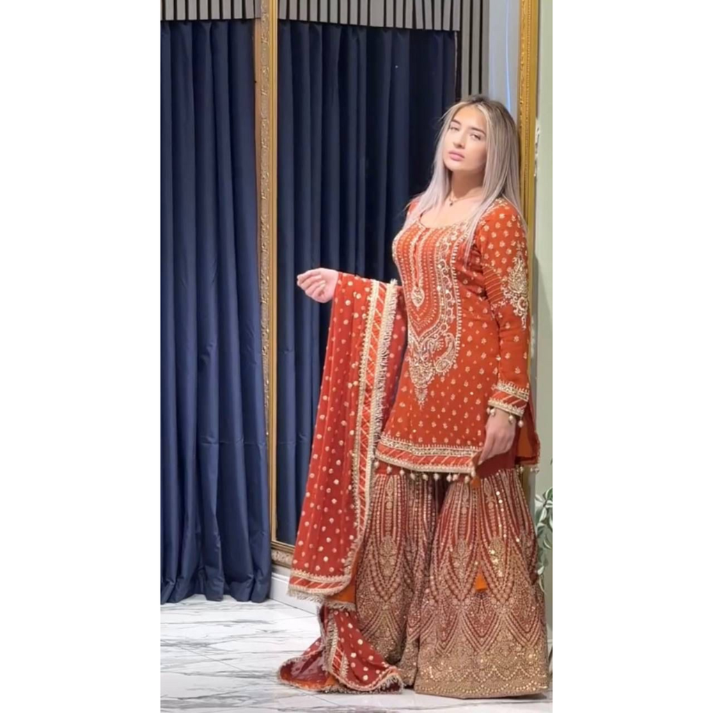 *Dupatta Fabric*:Heavy Faux Georgette With Embroidery 5 mm Sequence Work With Four Side Readymade Lace Border