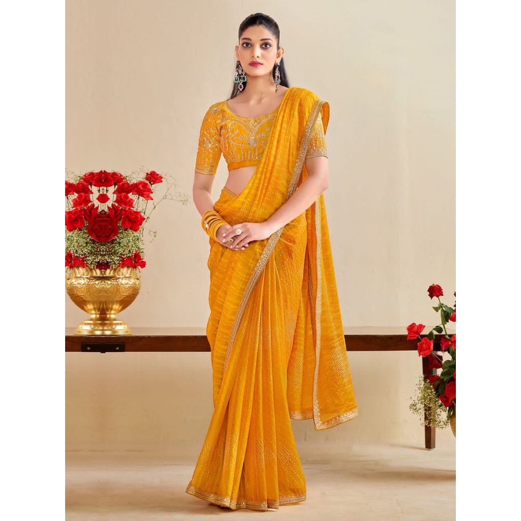 A89- BANDHNI SAREE WITH EMBROIDERY STITCHED BLOUSE