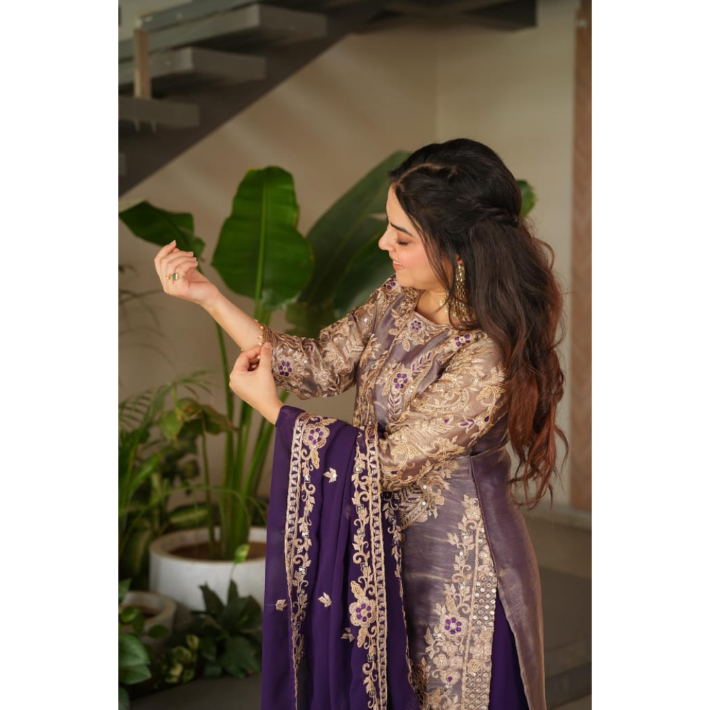 Top Fabric :- Crazy Silk Heavy Coding Embroidery Sequence Work