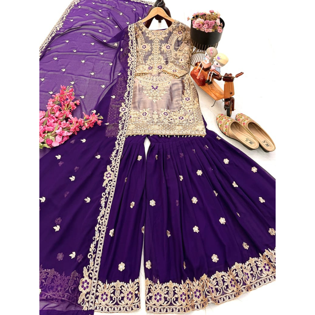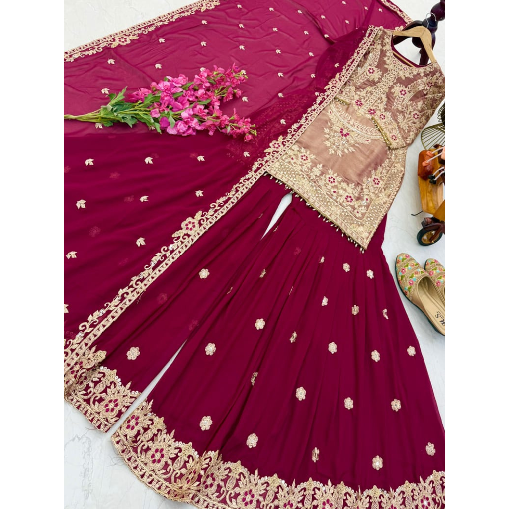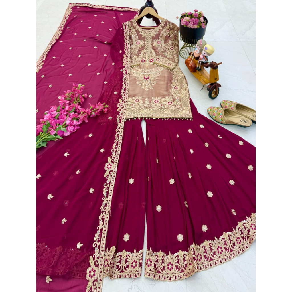 Palazzo Fabric :- Faux Georgette Heavy Coding Embroidery Sequence Work