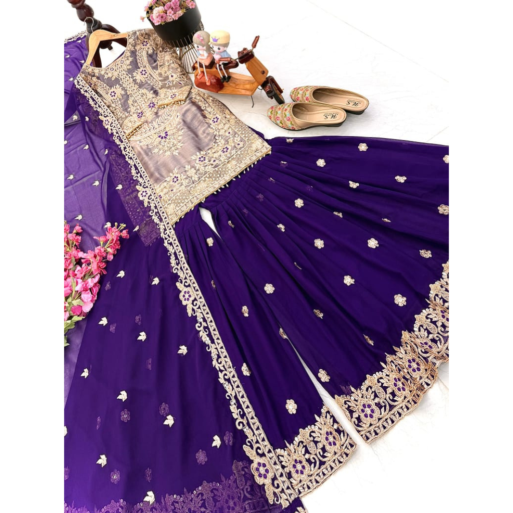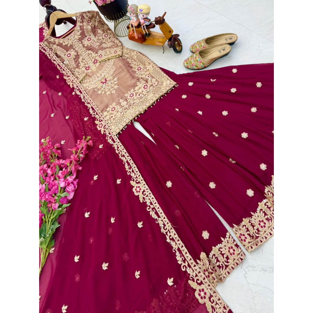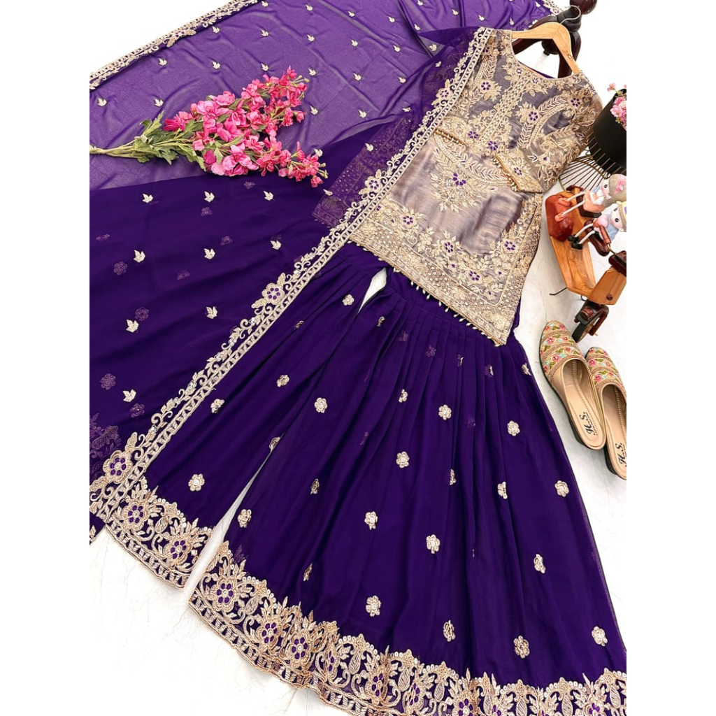 Palazzo Fabric :- Faux Georgette Heavy Coding Embroidery Sequence Work