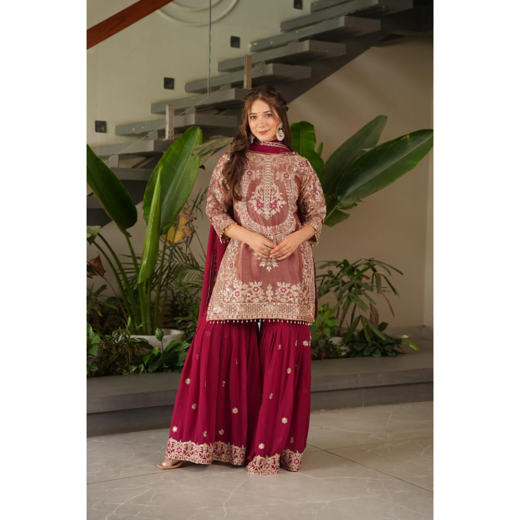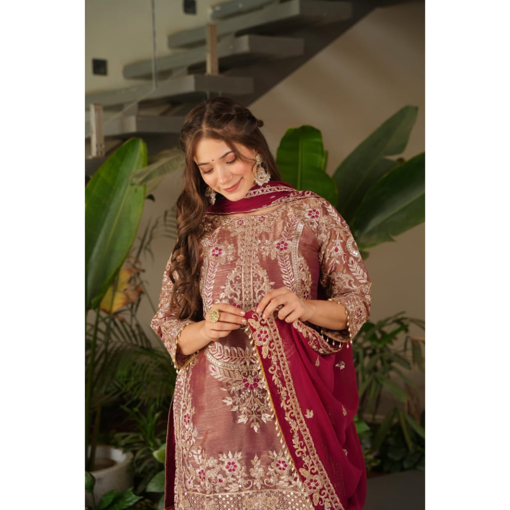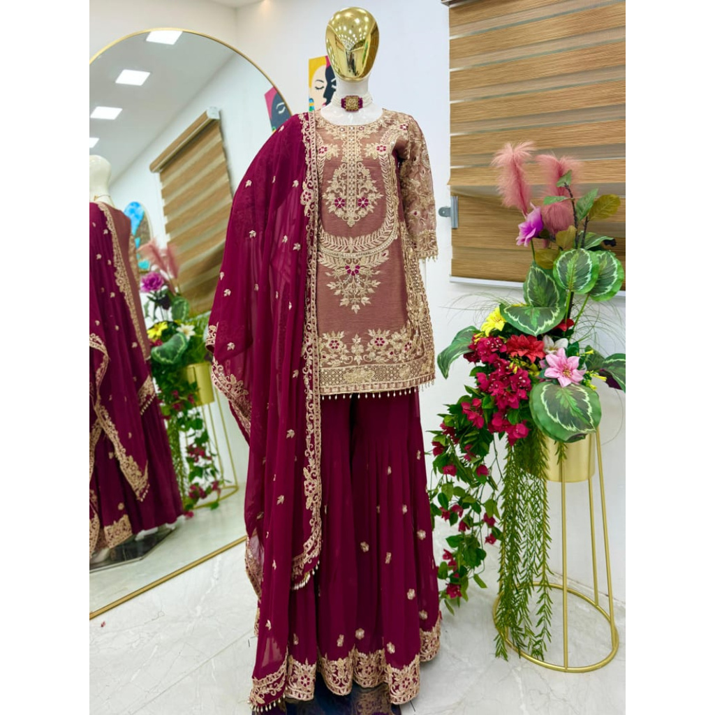 ✨ Designer Embroidered Top Palazzo Dupatta Set Collection ✨ CODE-AYYANA-2