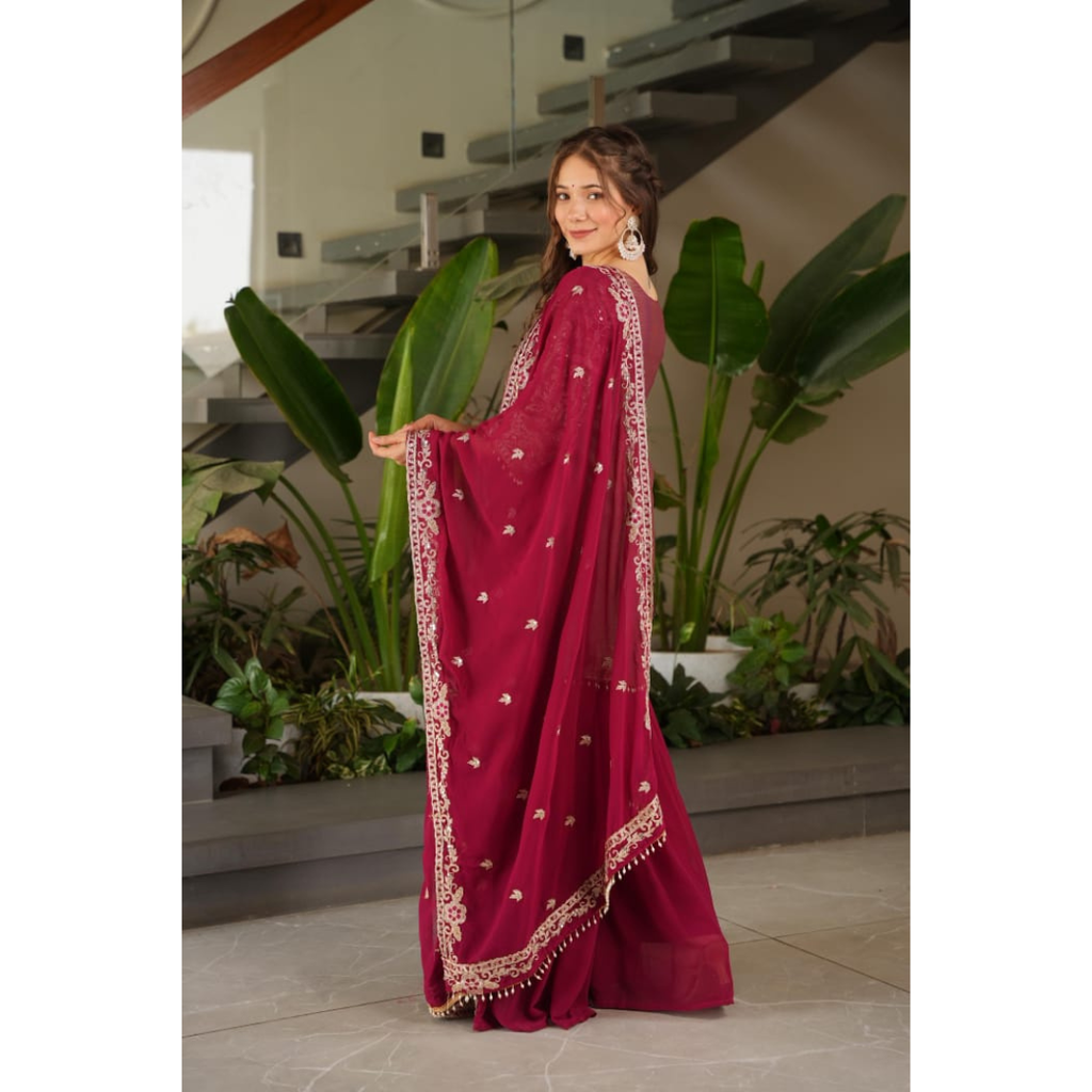 Dupatta Fabric :- Faux Georgette Heavy Coding Embroidery Sequence Work