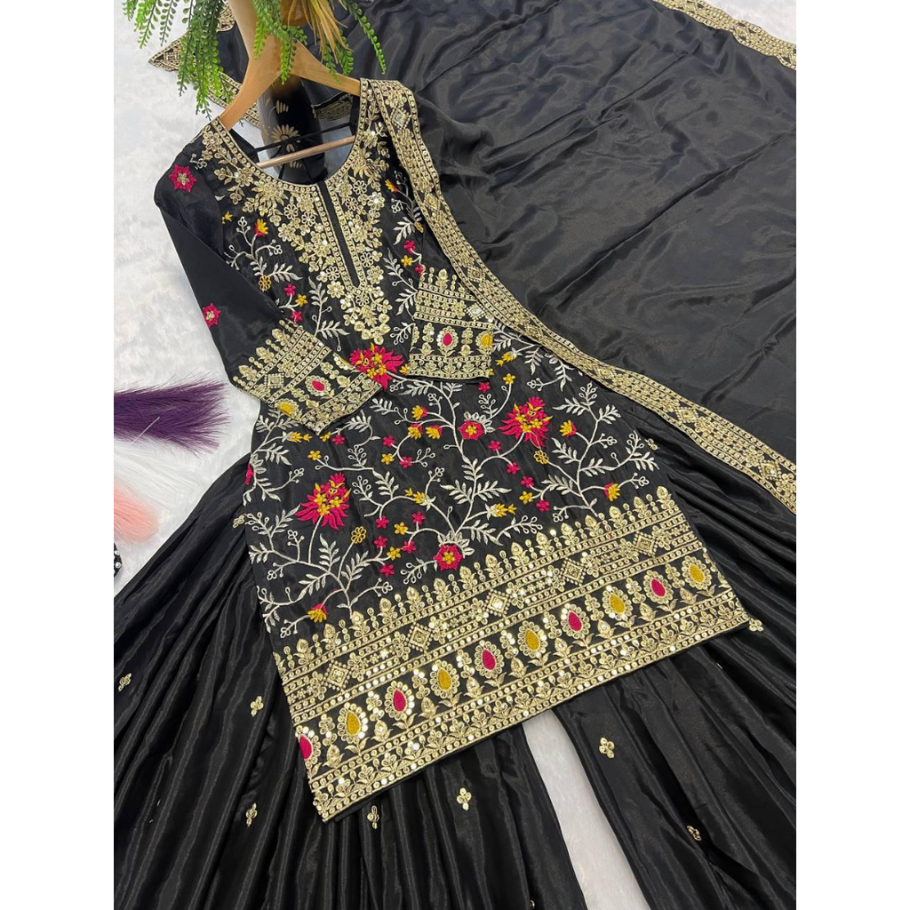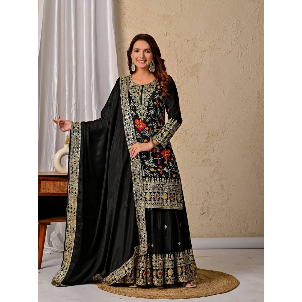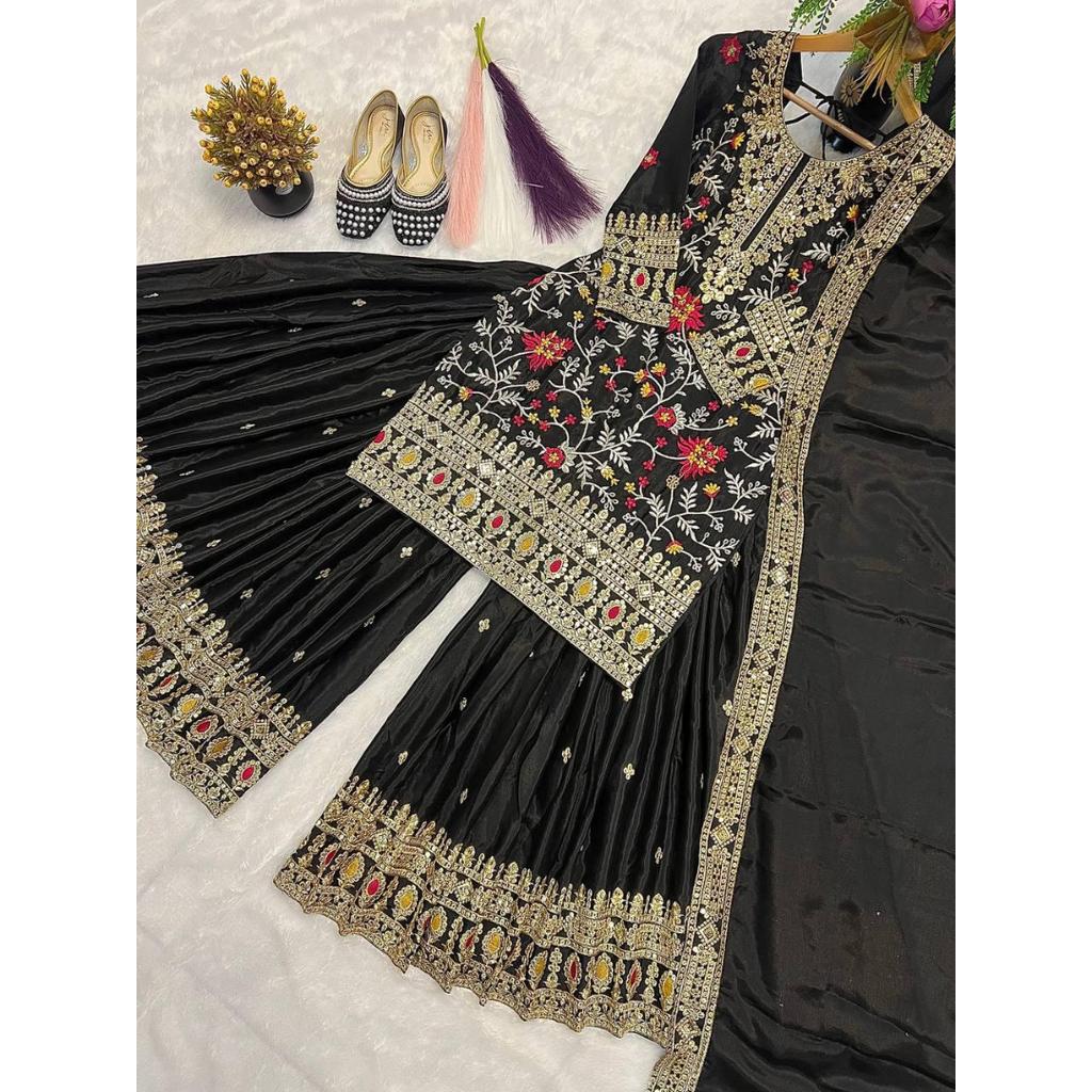 STUFF = * Heavy Chinon Silk WITH EMBROIDERY. Top Length 39-40 Inches Approx. Palazzo Bottom Length 40-41 Inches.