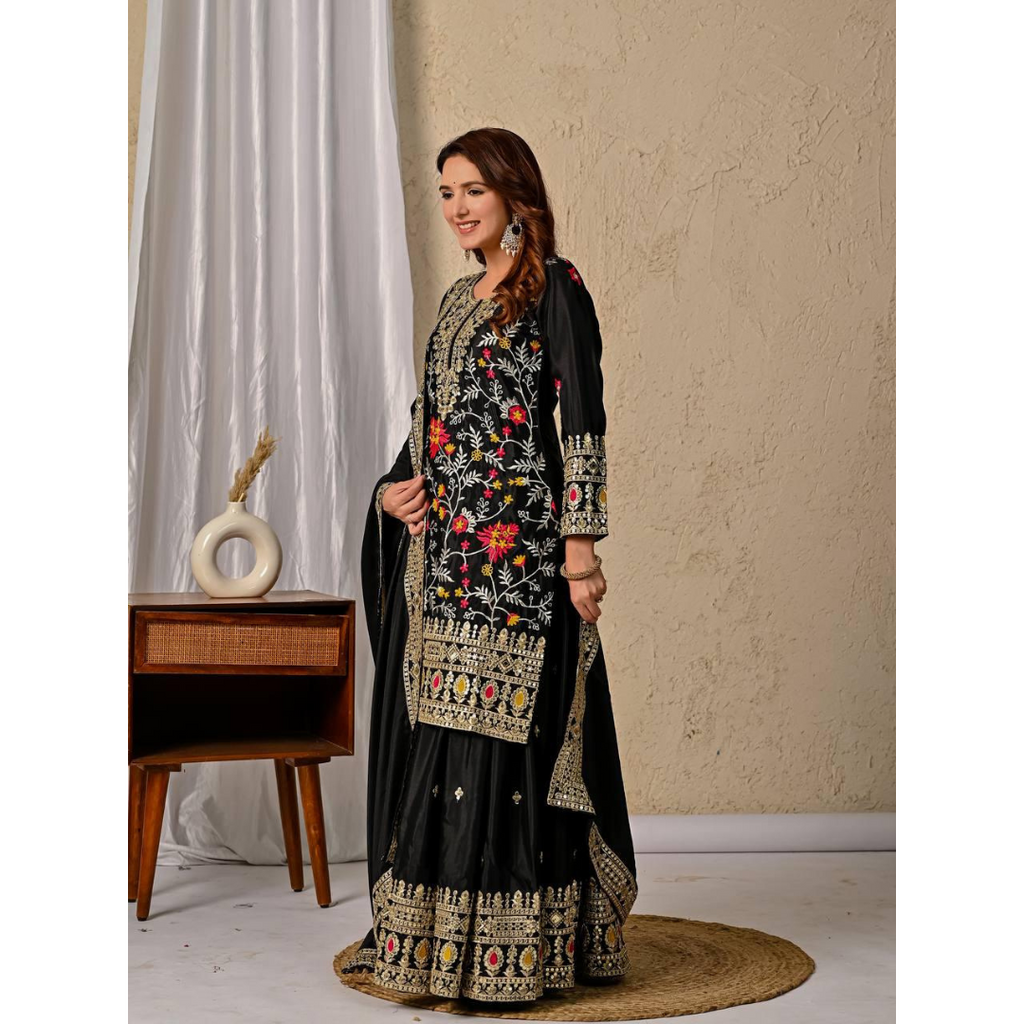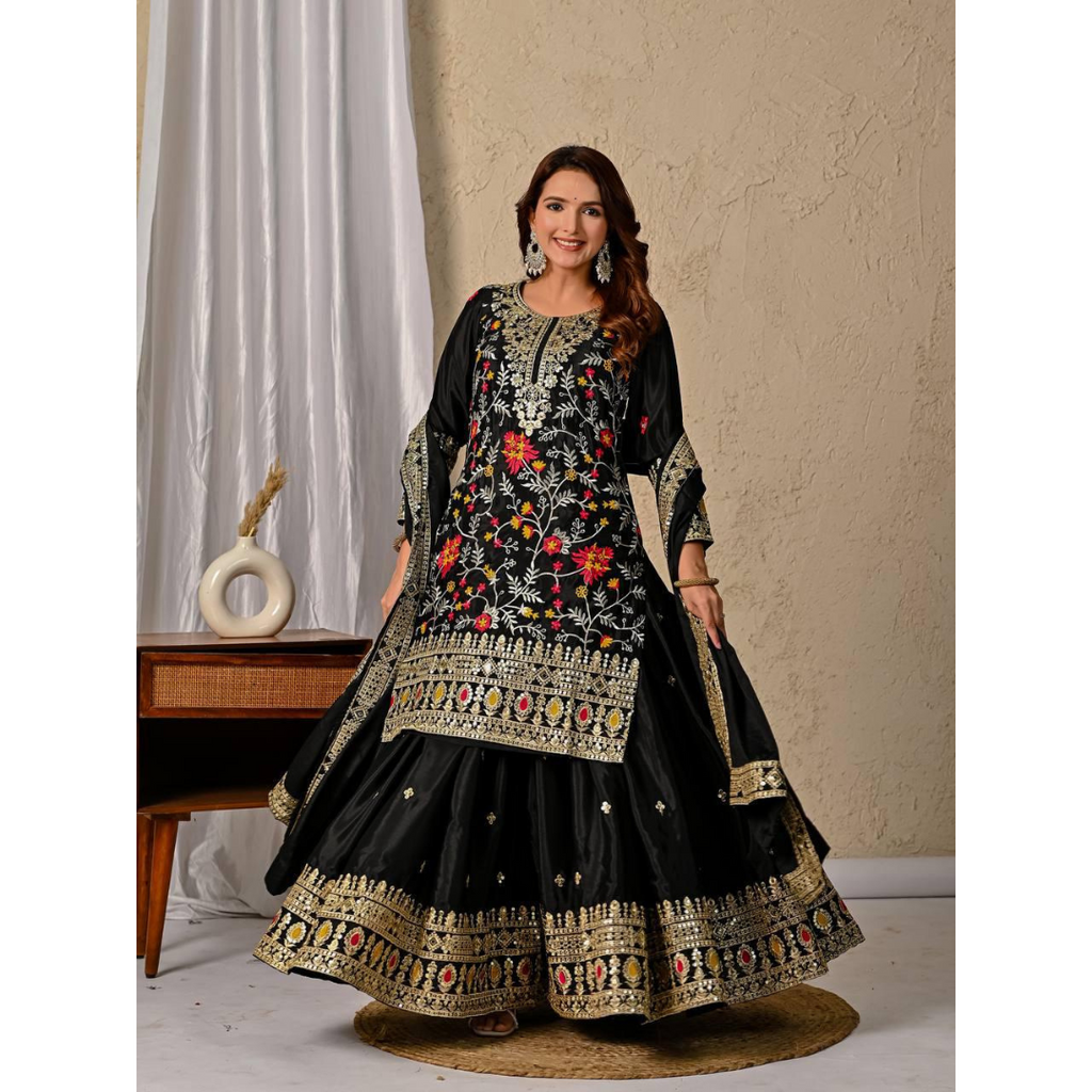 Here We Are Presenting Our Newly Arrived Perfect Stitched Shirt With heavy sequence embroidery and Flairy Gharara Having Heavy patchwork Border and Dupatta!!
