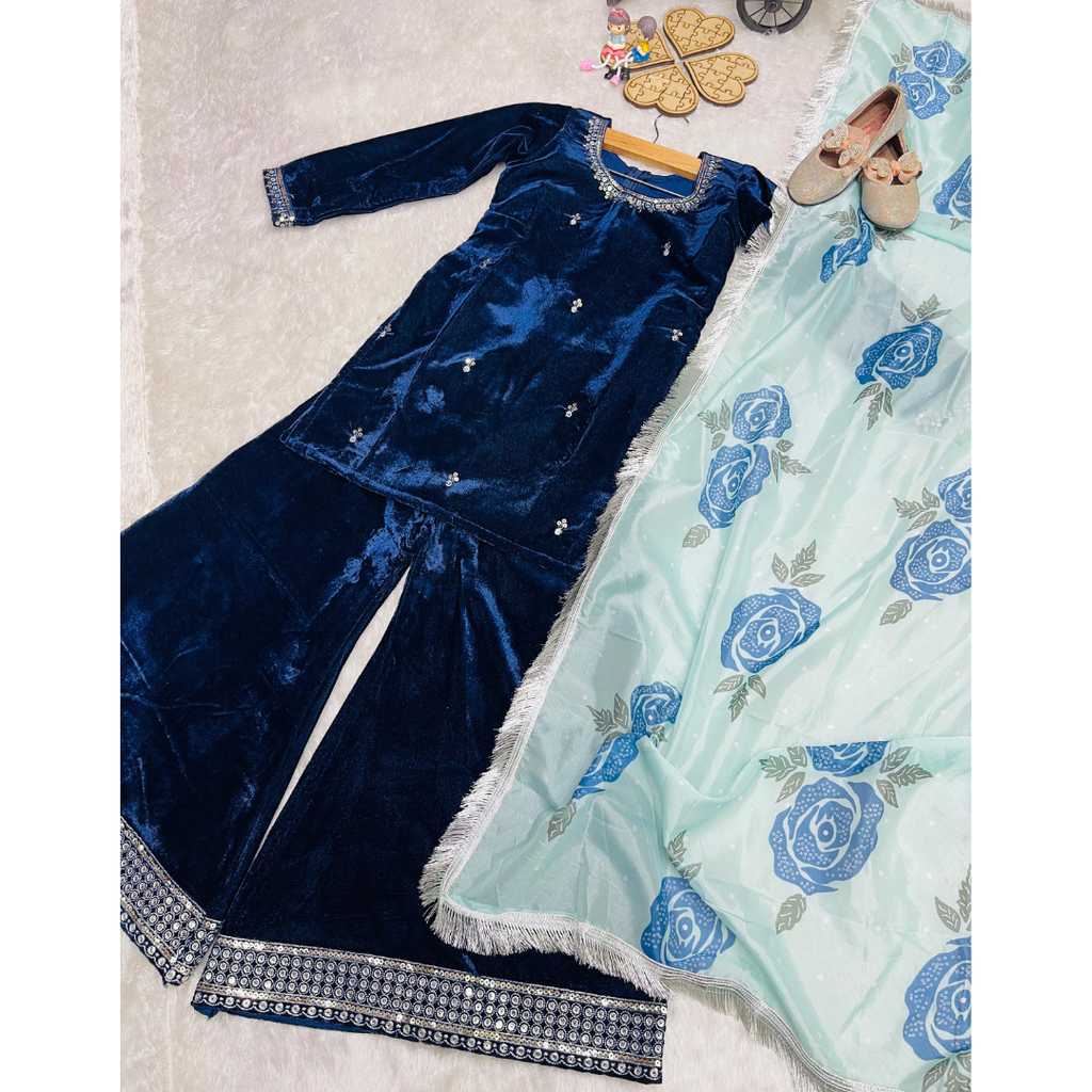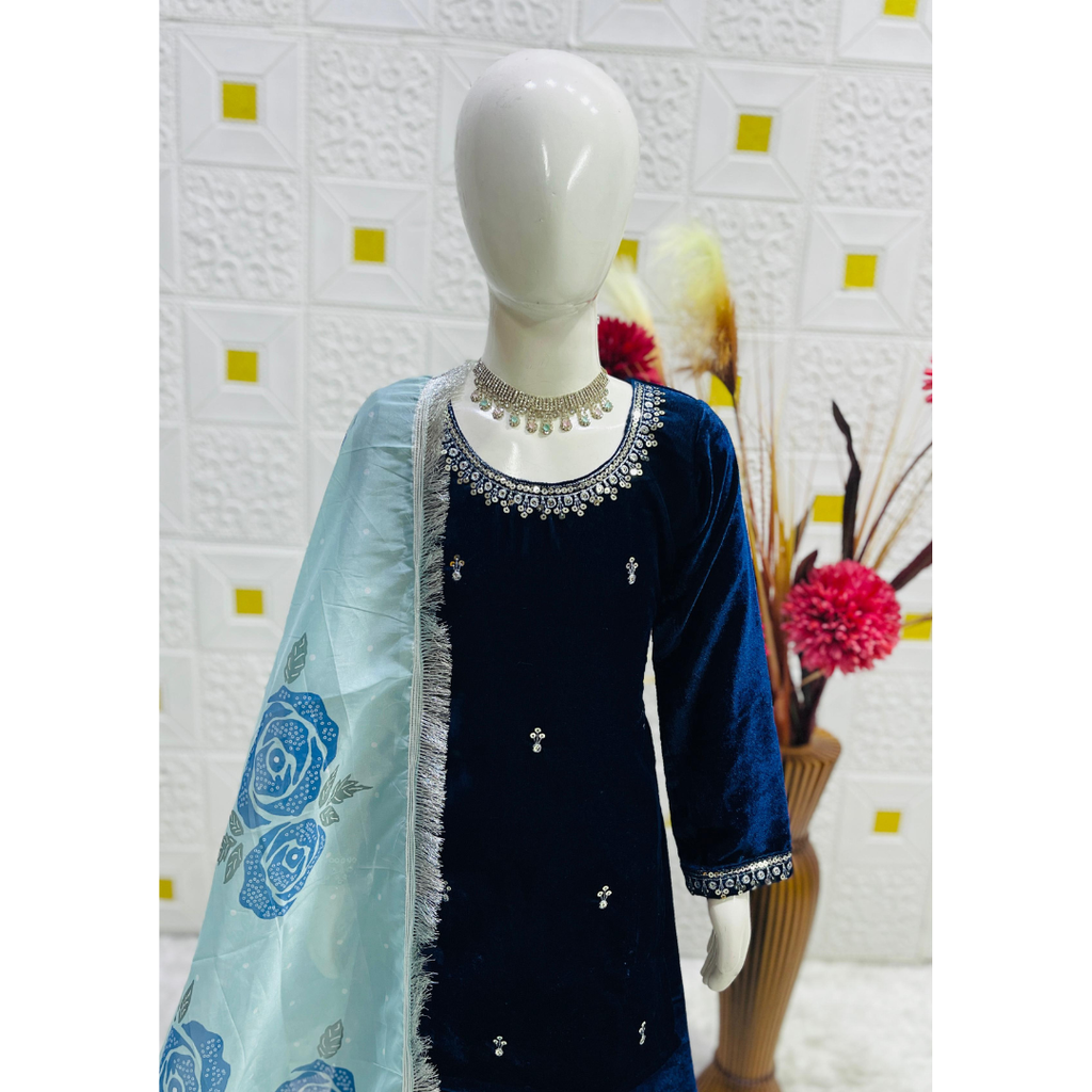 🎀DESIGNER WEAR TRENDING VISCOSE VELVET TOP-SHARARA AND DUPATTA SET READY TO WEAR COLLECTION 👌💕