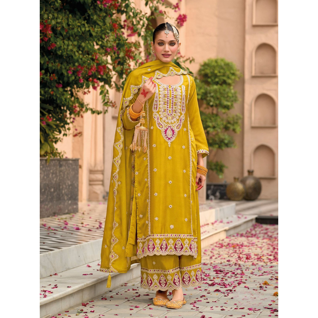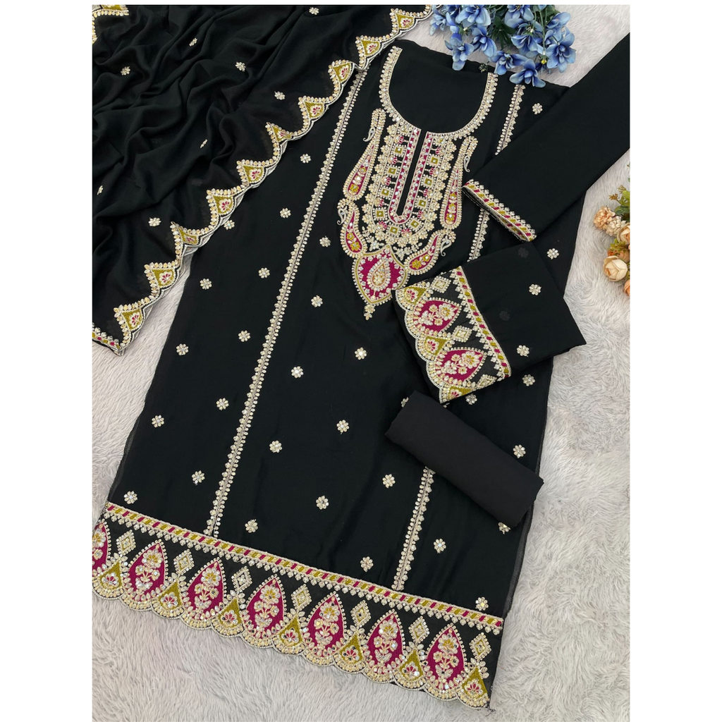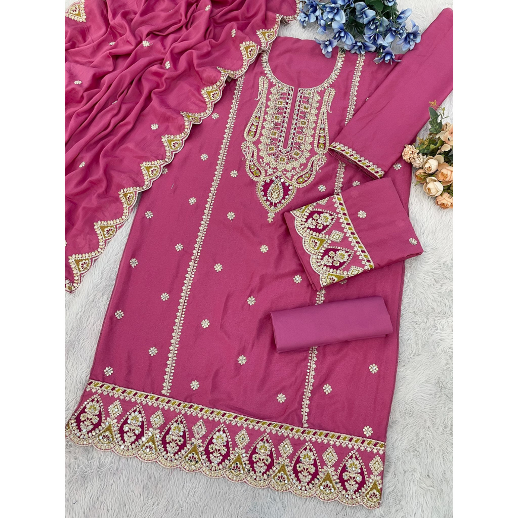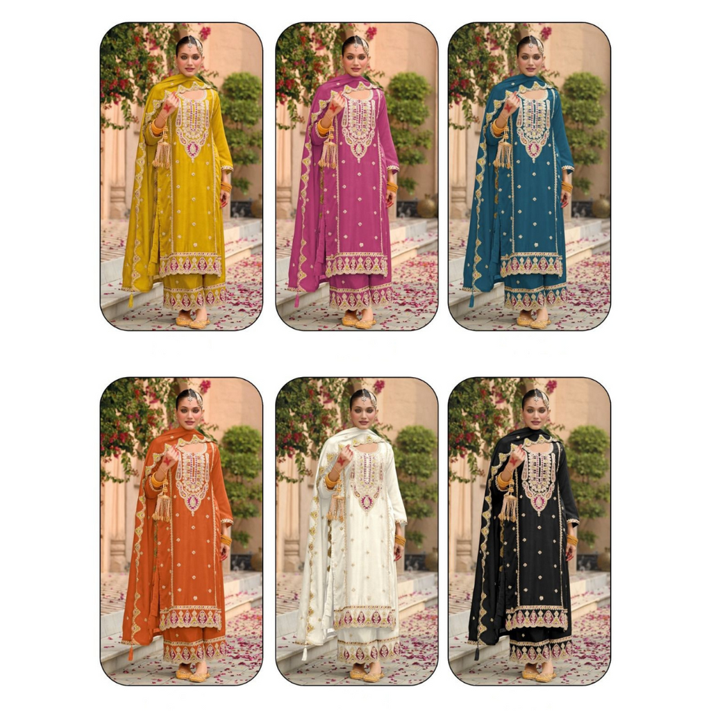 Dupatta Fabric :Heavy Chinon Embroidery Sequence Work Lace Border (Fully stitched).