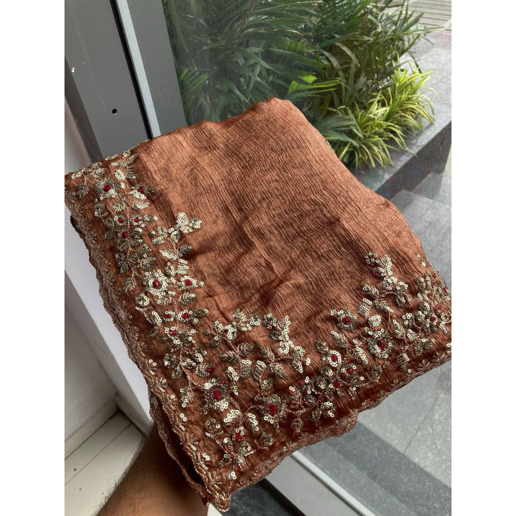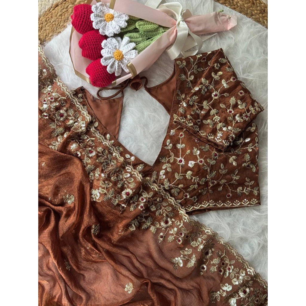 *SAREES* :Heavy soft fancy chiffon silk fabric with c- Pallu Zari and sequence work cut work border on sarees