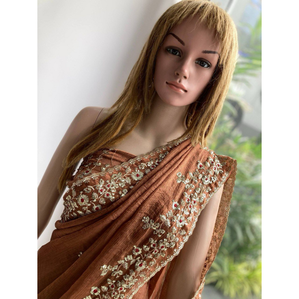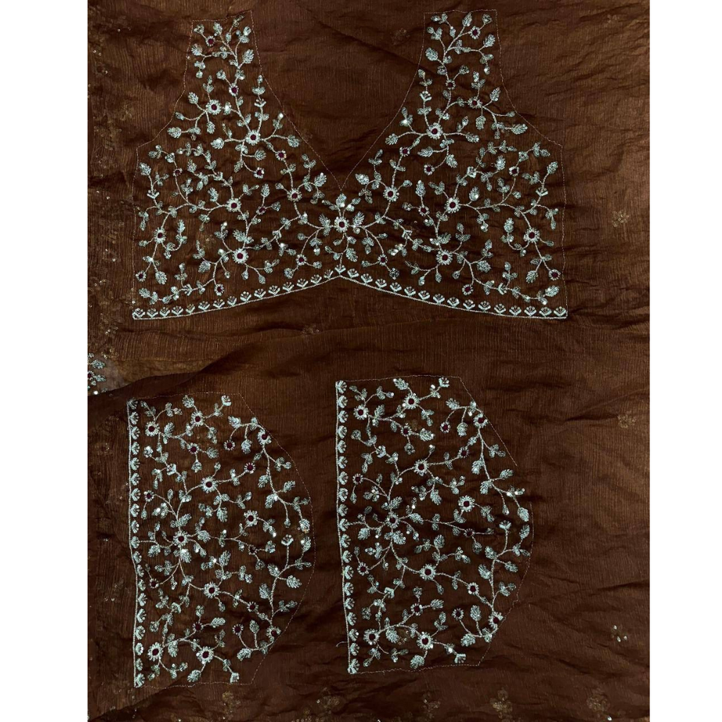 *Blouse*:-Heavy soft fancy chiffon silk fabric fully work *stitched*blouse.