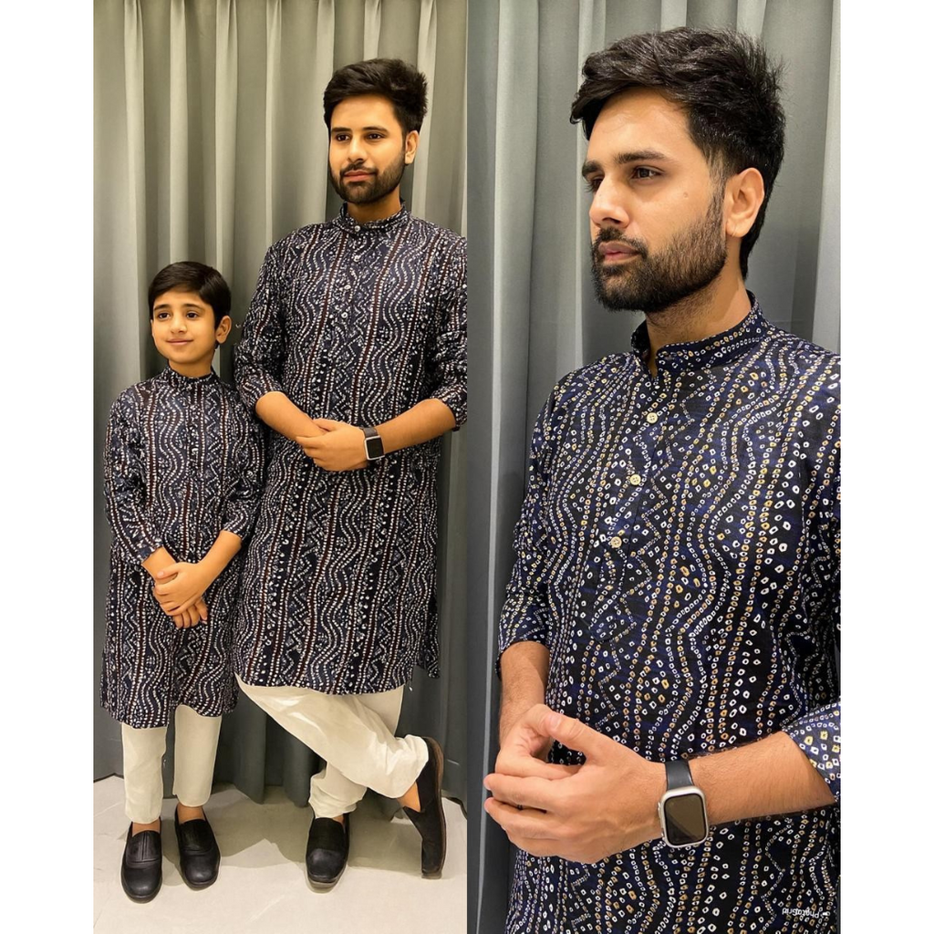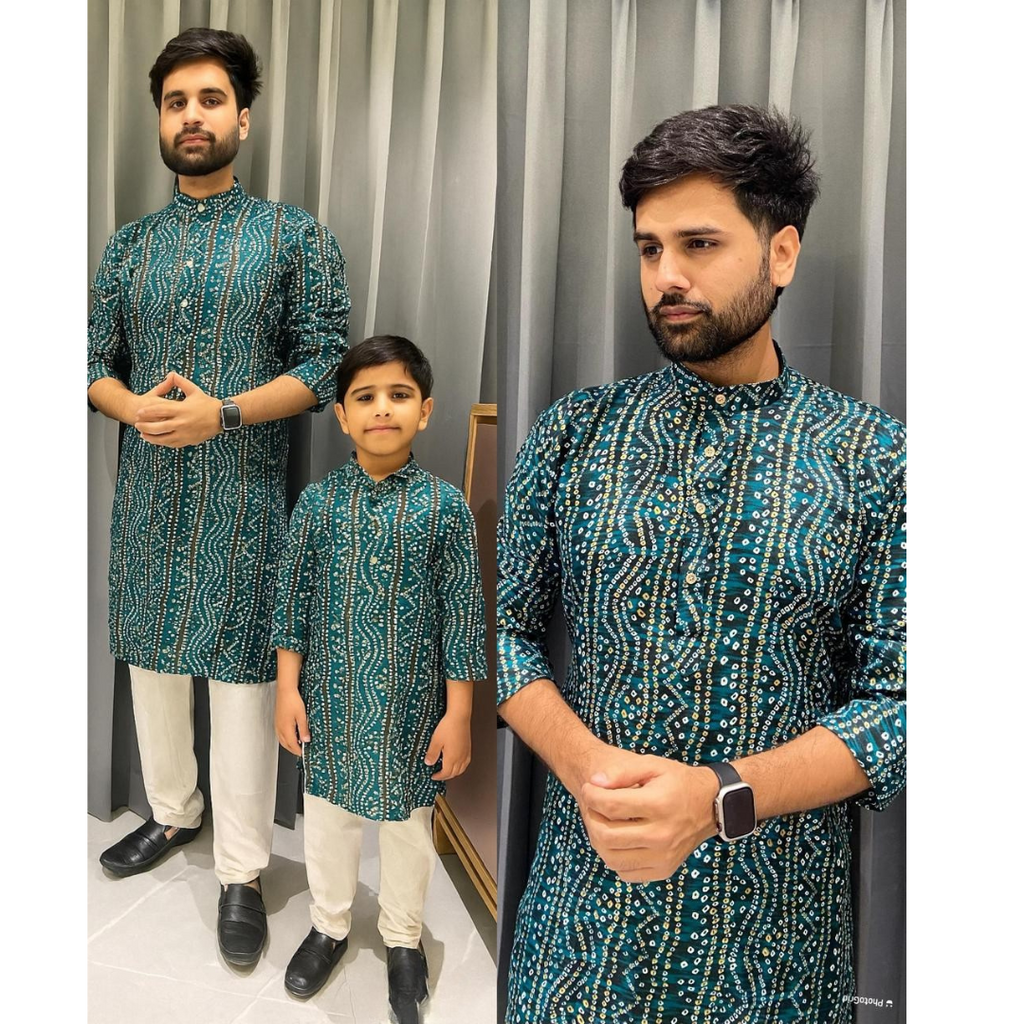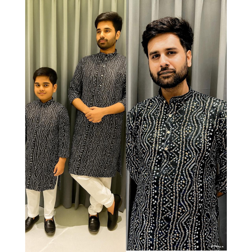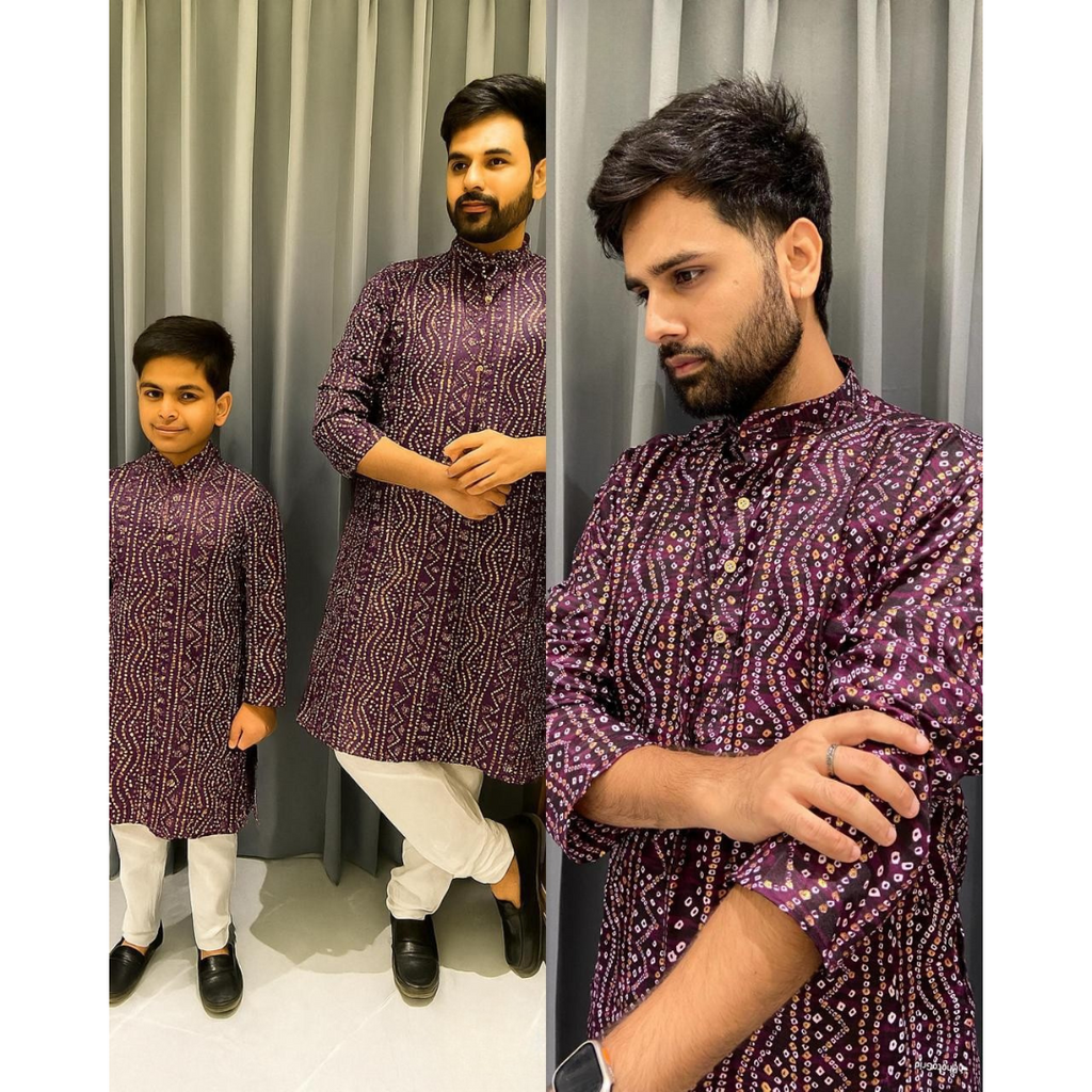 Navratri and Festival Special Mens and kids Kurta in Bandhani Print