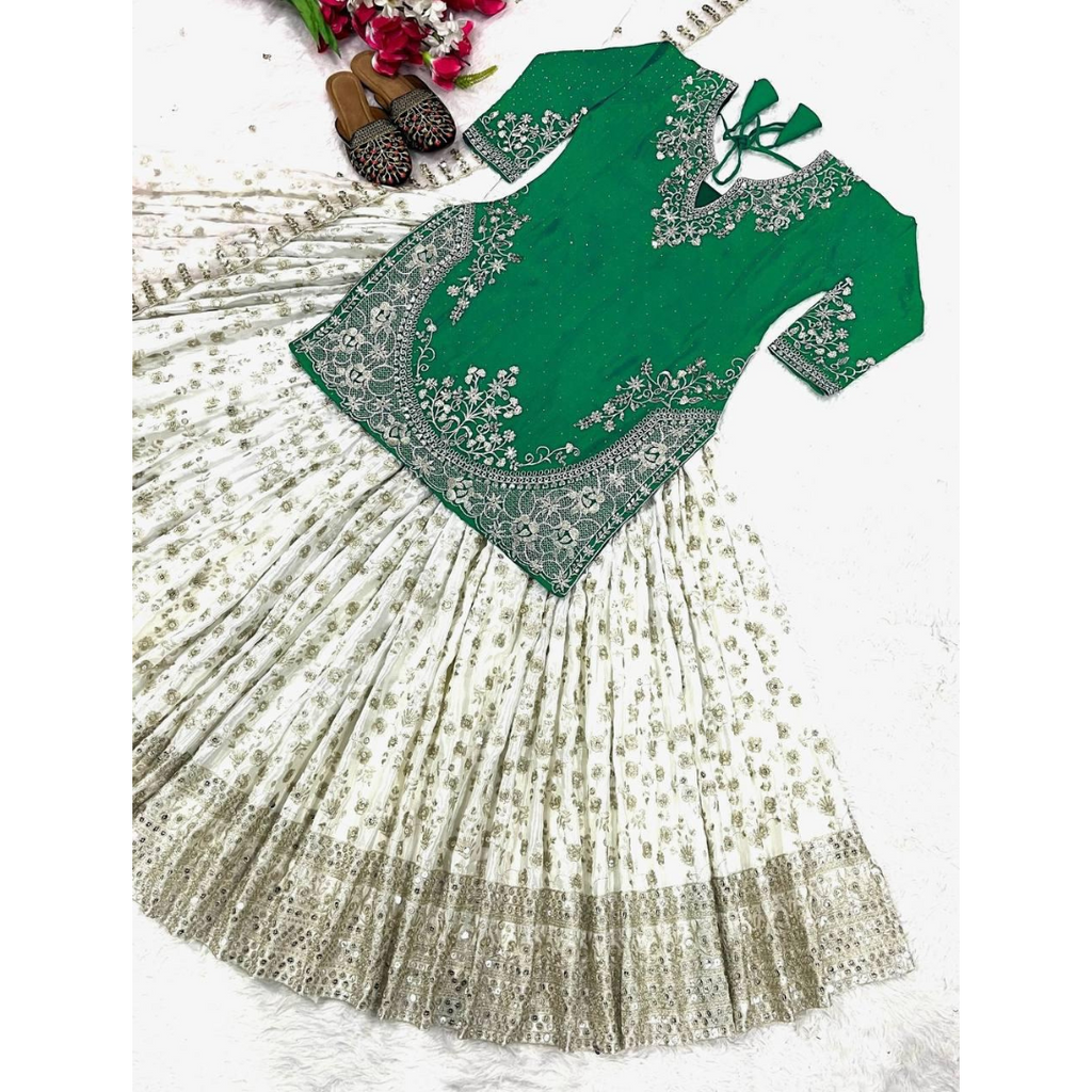#Free Size Stitched Lehenga With Fancy Style Top stitched