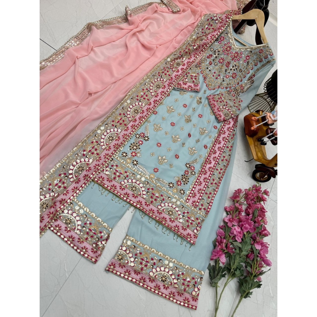 🔵©️ ZD-Series 🎥 New Designer Party Sharara Suit Dupatta Set👗 ®️🟢