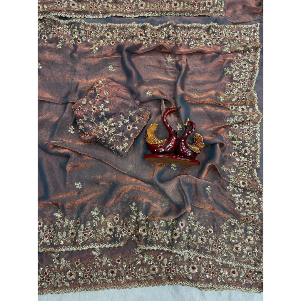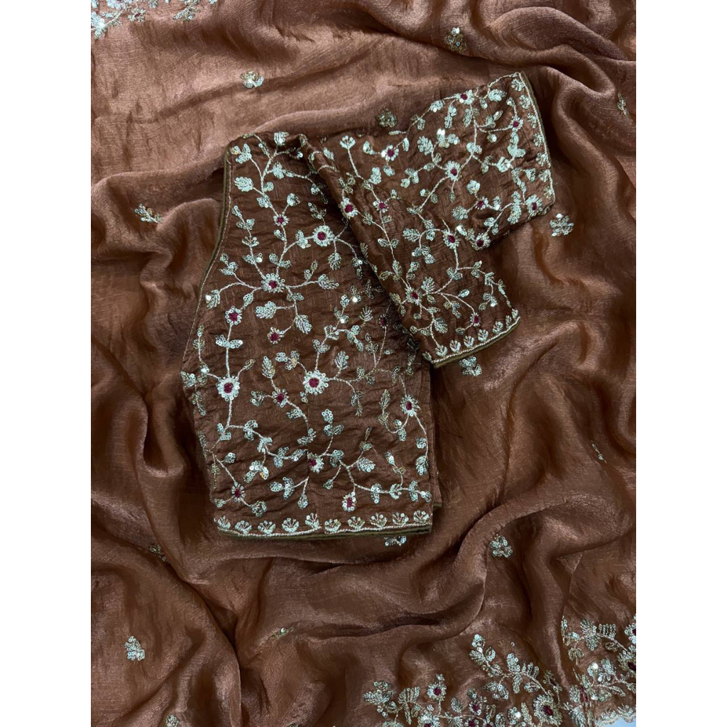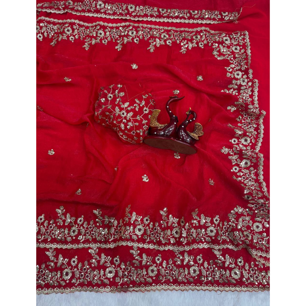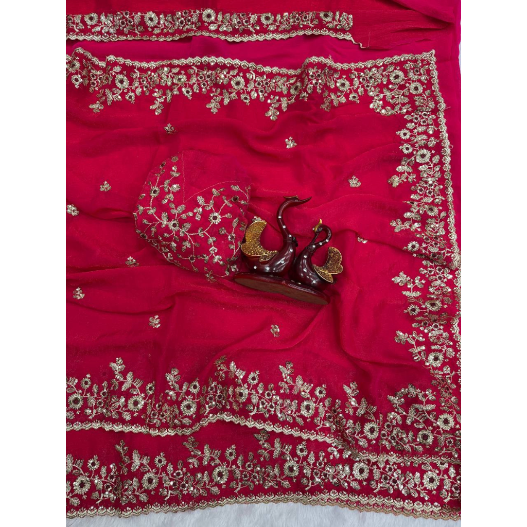 Looking someone for this same colour beautiful Designer Saree on Fendy Chiffon Fabric with Thread & Sequence work and blouse on Fendy Chiffon Silk Fabric with Thread & Sequence work.