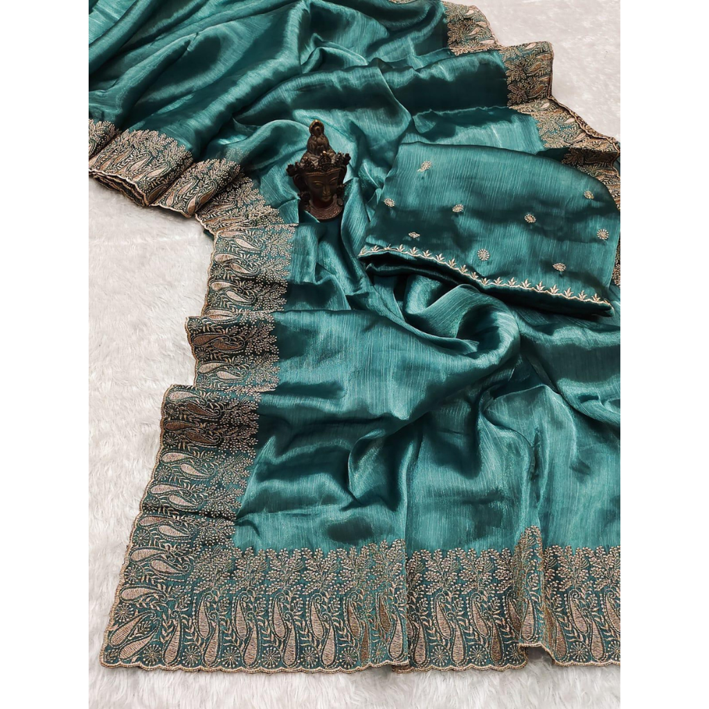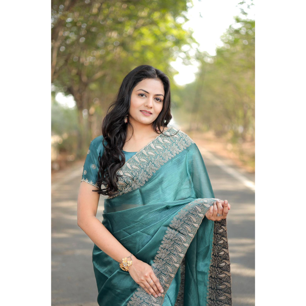 Fall in love with this stunning saree in an eye-catching shades, crafted with finest and rich detailing. A perfect blend of grace and glam!