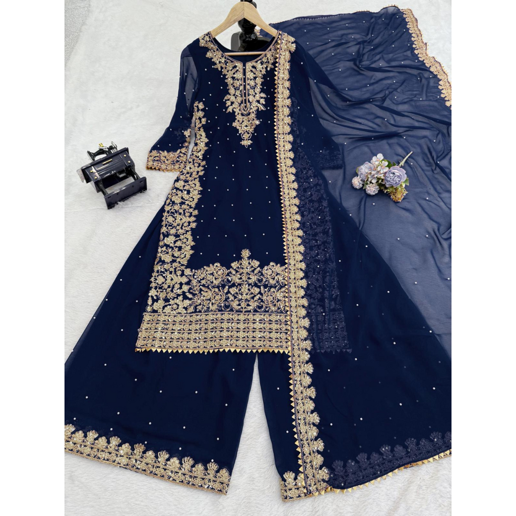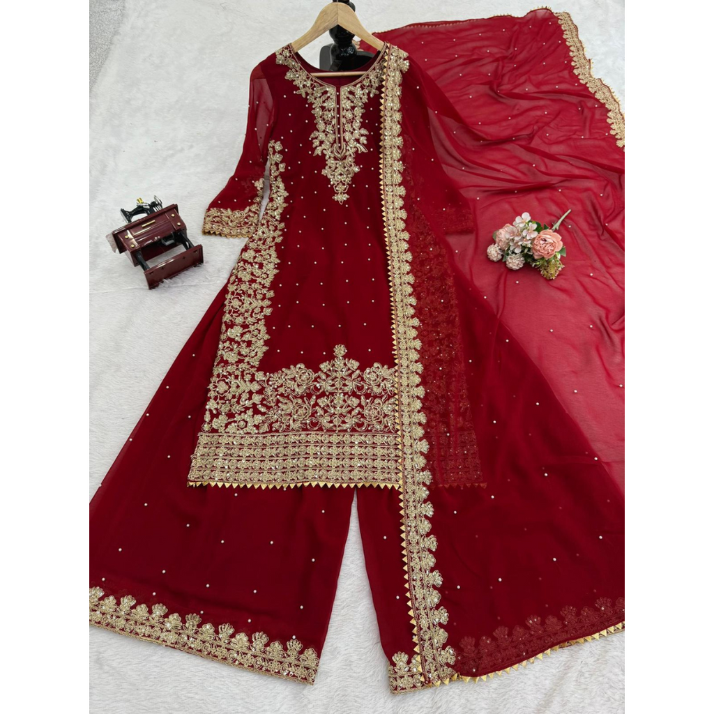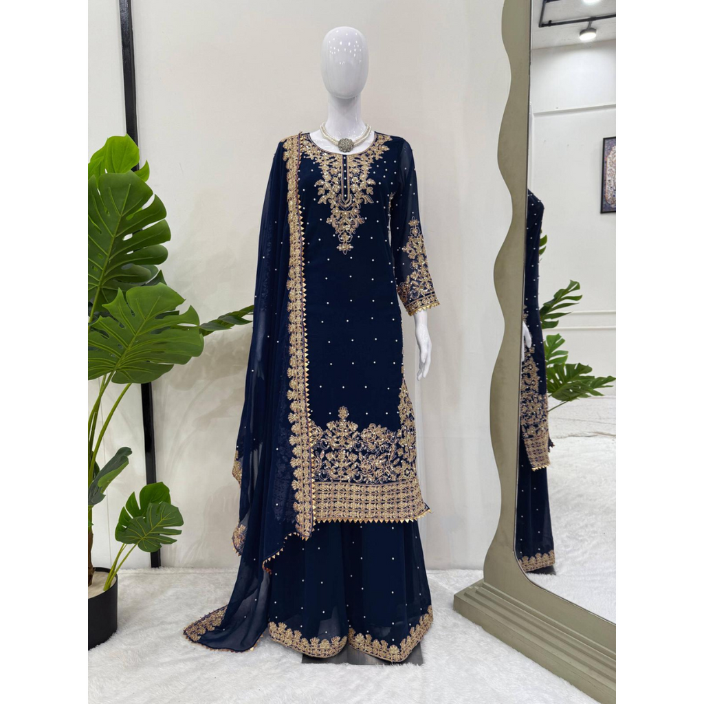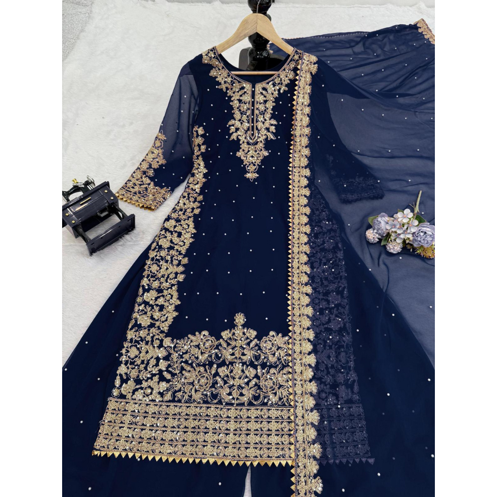SRK-5901 *๐๐Presenting New Designer Party Wear Look Top- Sharara and Dupatta With Heavy Embroidery Work๐ฅ๐