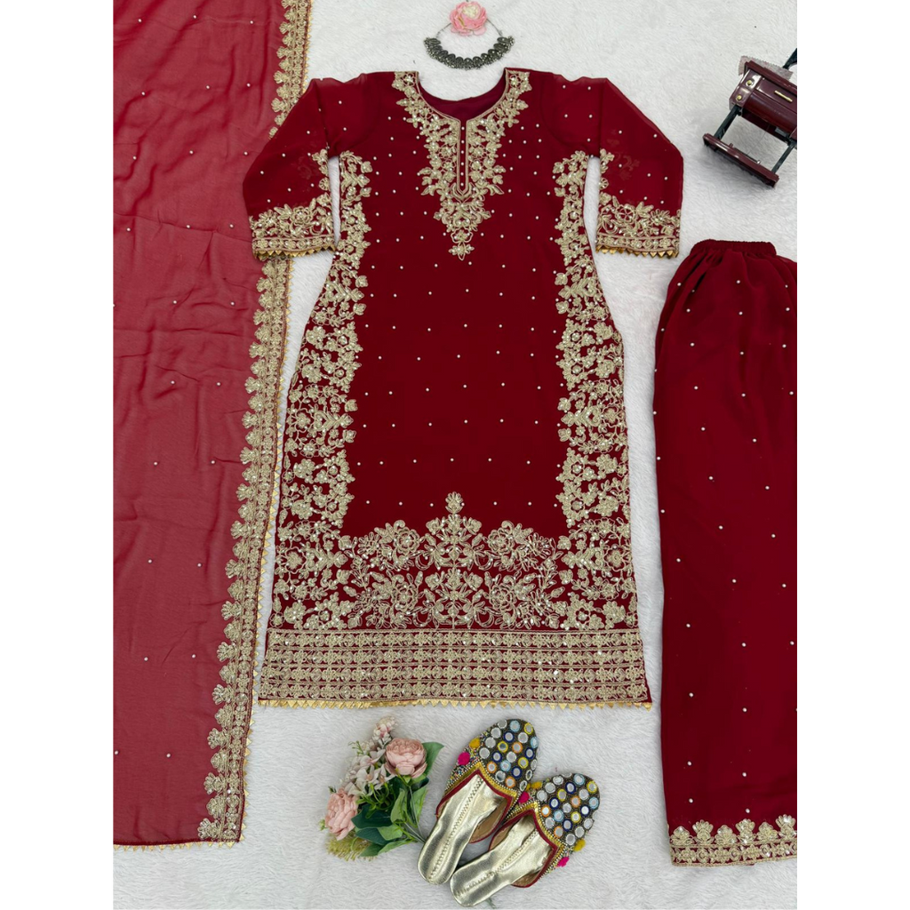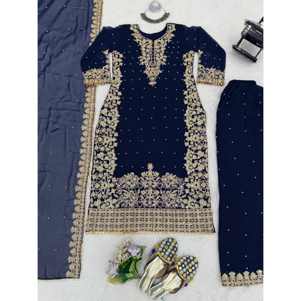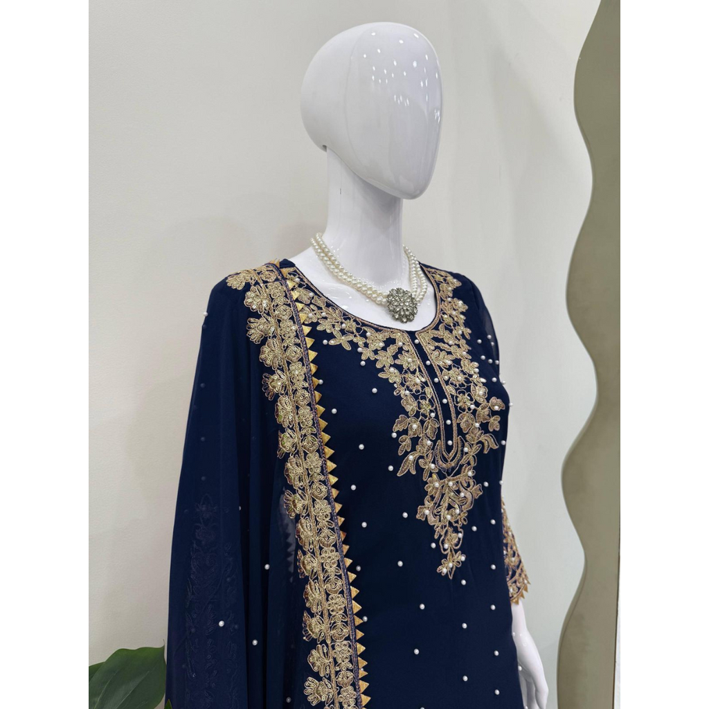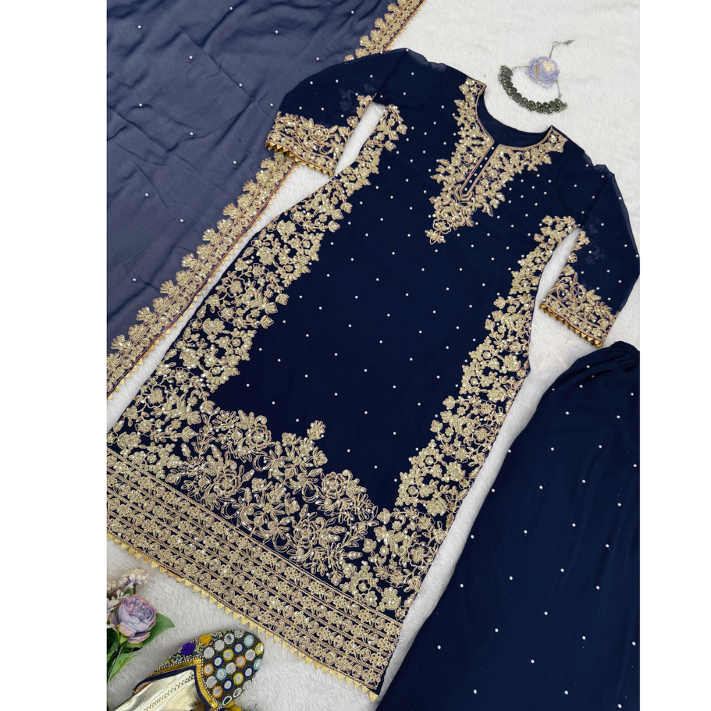 ย Dupatta Fabric :Heavy Faux Georgette With 5mm Embroidery Sequence Work Dupatta Length: 2.10MTR