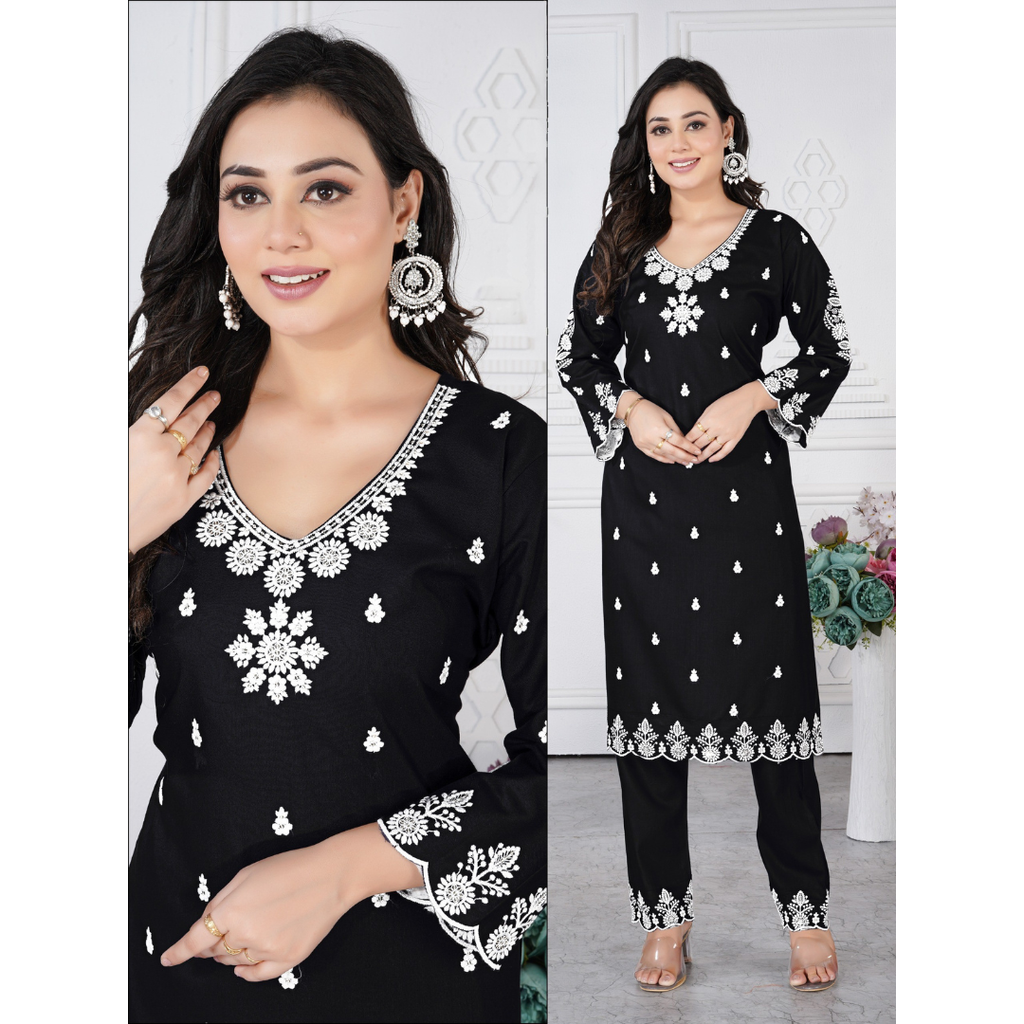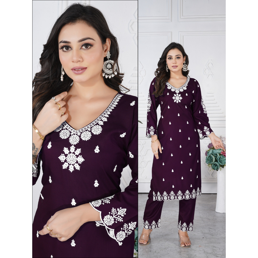 Chikankari Style thread embroidery Rayon Kurti Sets Machine Embroidery chikankari style.
