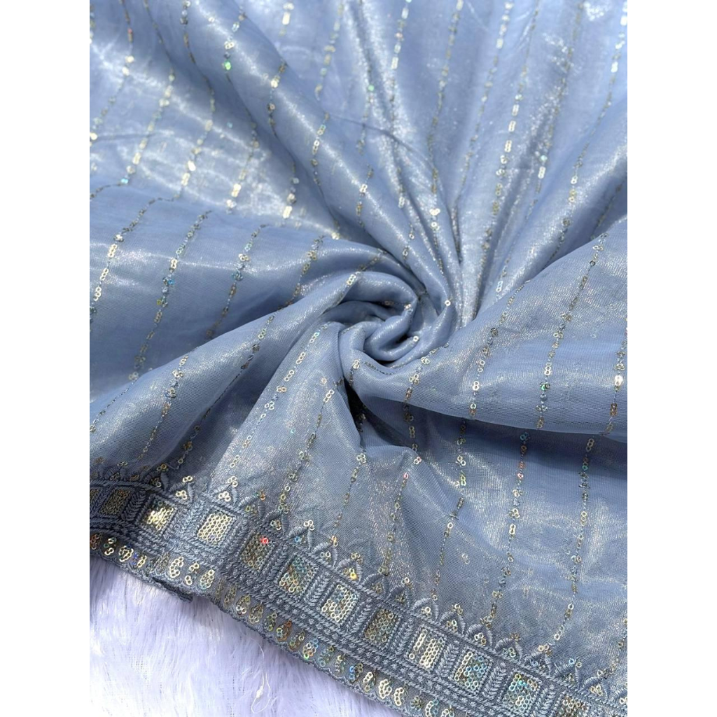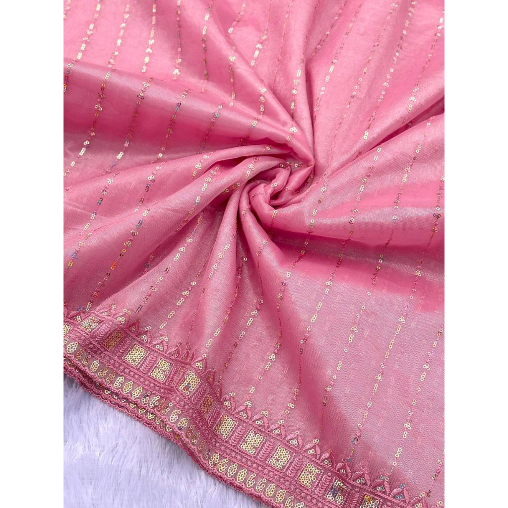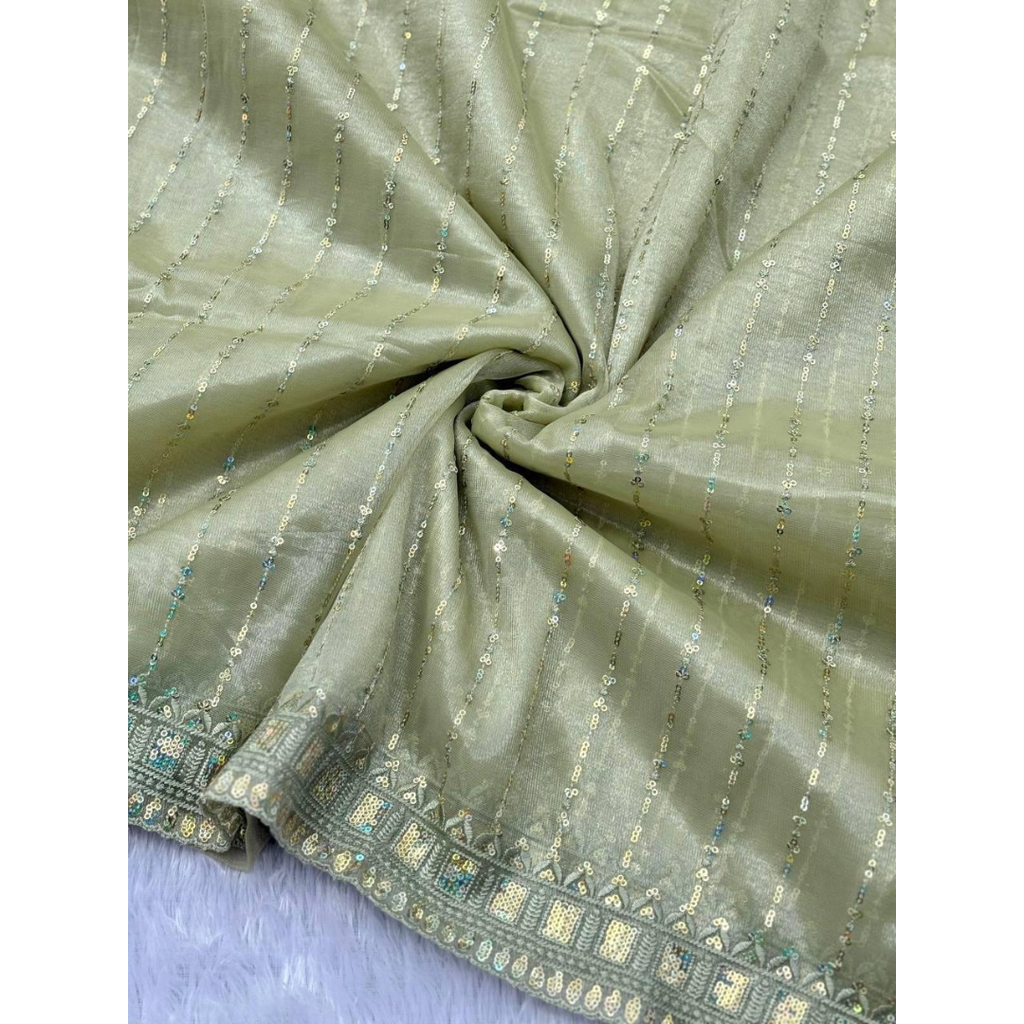 Superb Soft Refined Tissue Silk Saree in pastel shade colors with viscose thread sequins Work Attached with running blouse of work
