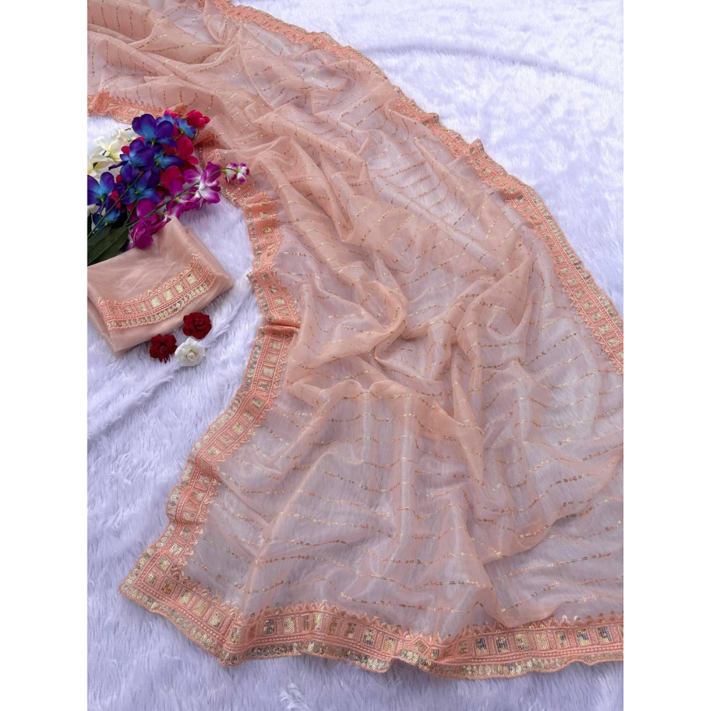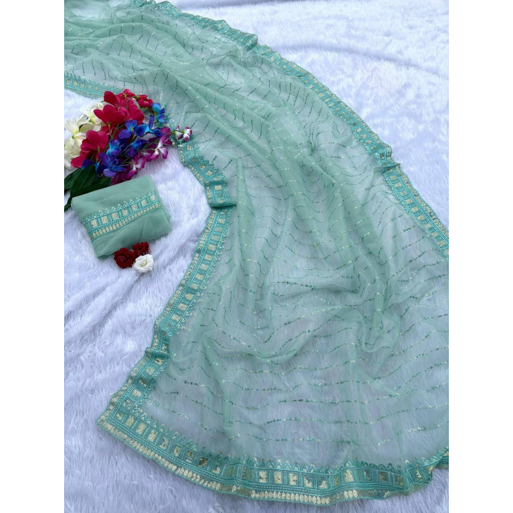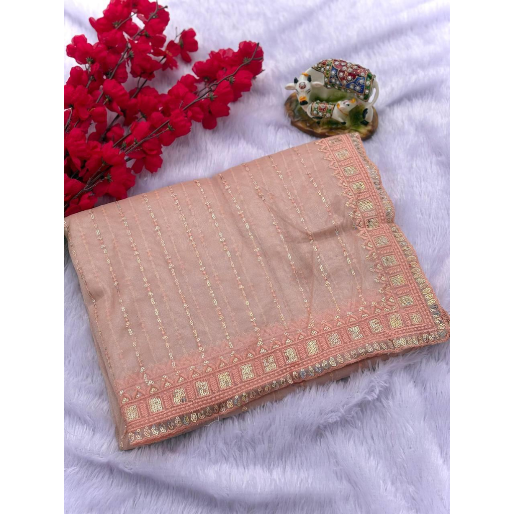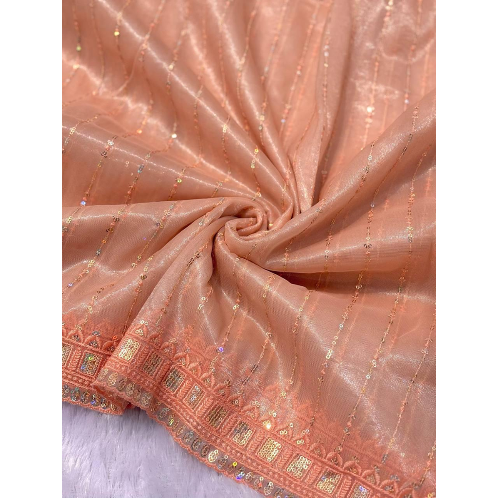 Superb Soft Refined Tissue Silk Saree in pastel shade colors with viscose thread sequins Work Attached with running blouse of work