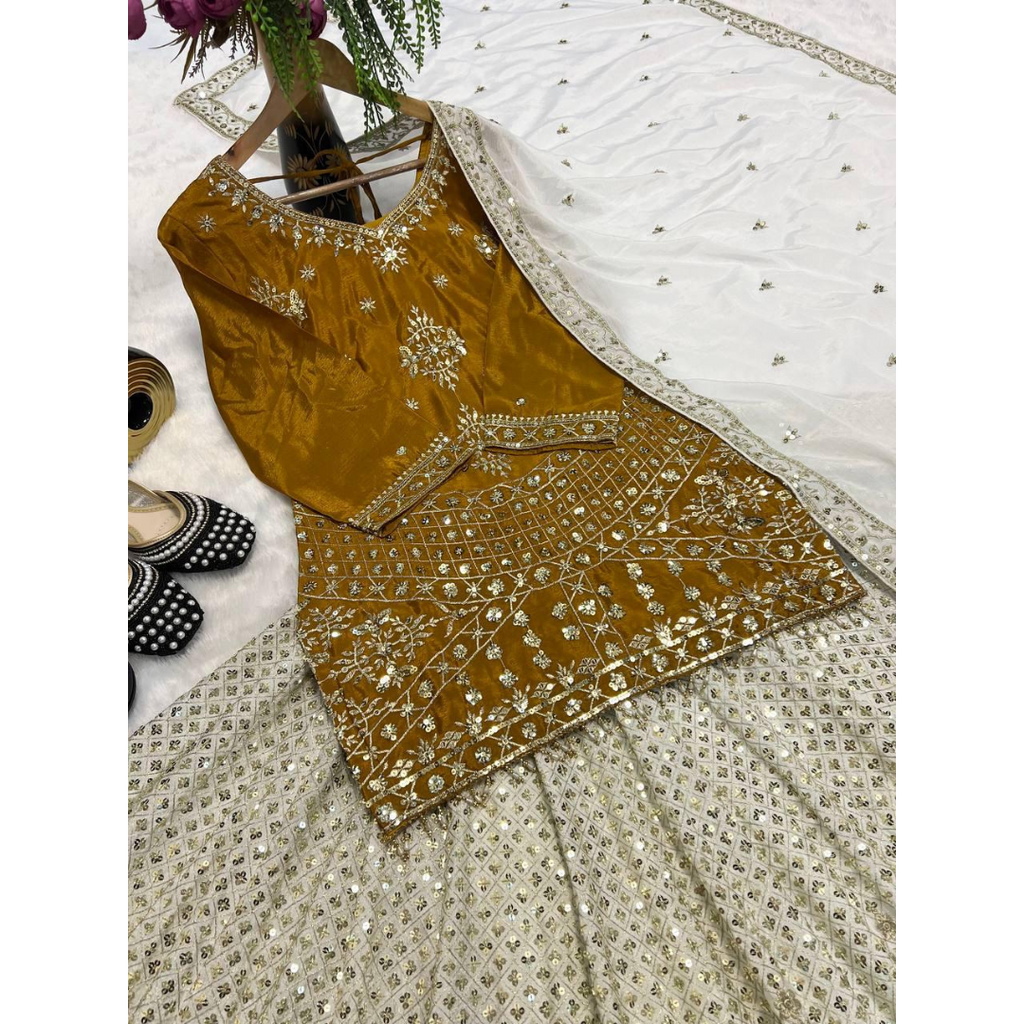 💃 Dupatta Fabric :- Chinon Silk With Sequence Fancy Less Border Work (dupatta size 2.30 meter)