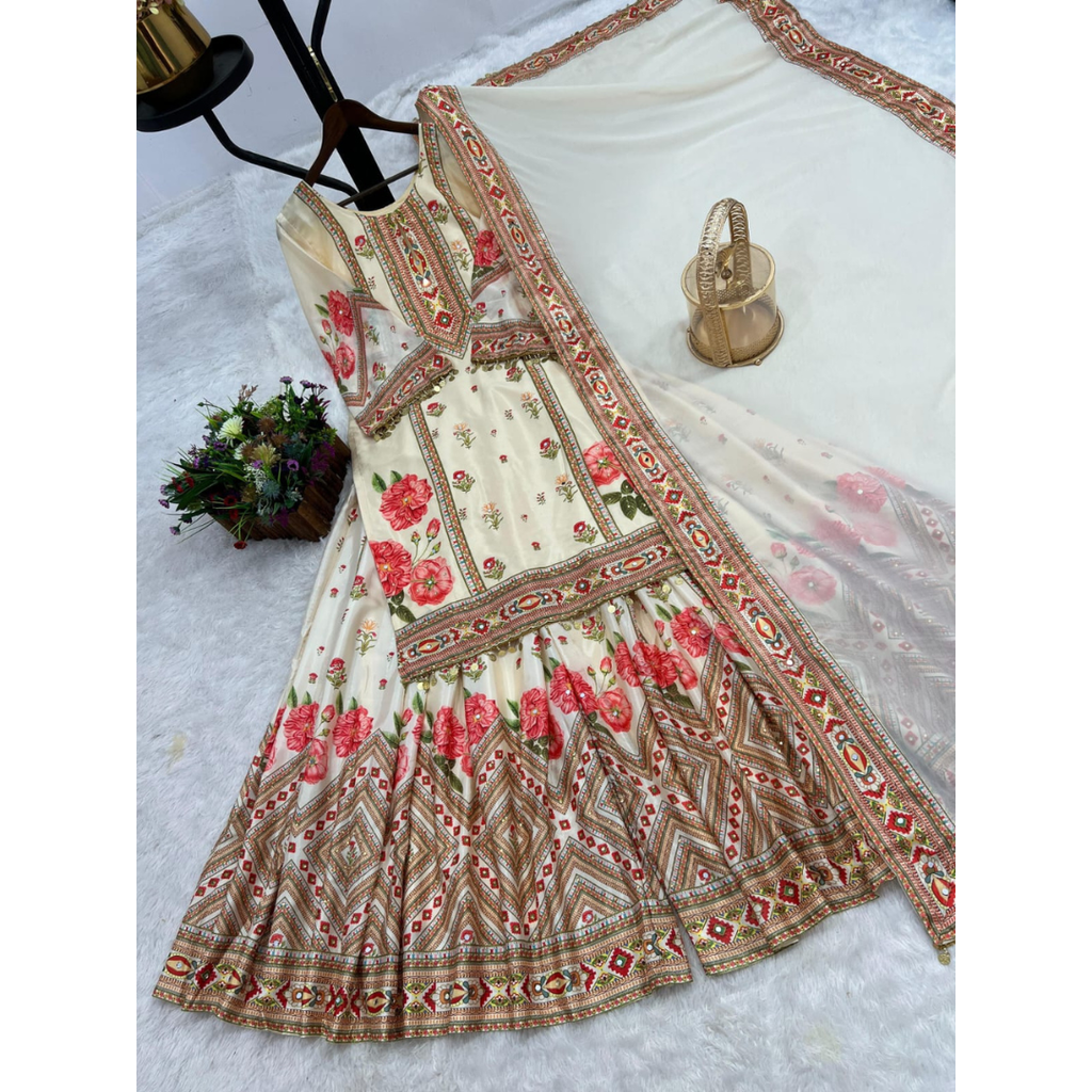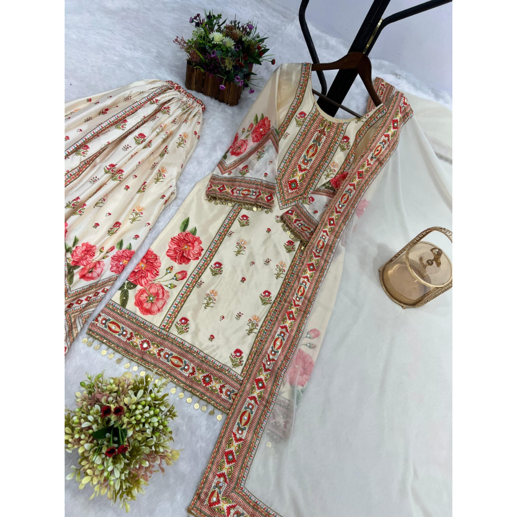 Sharara Work : Fancy Digital Print With Heavy Real Mirror And Stone Hand Work