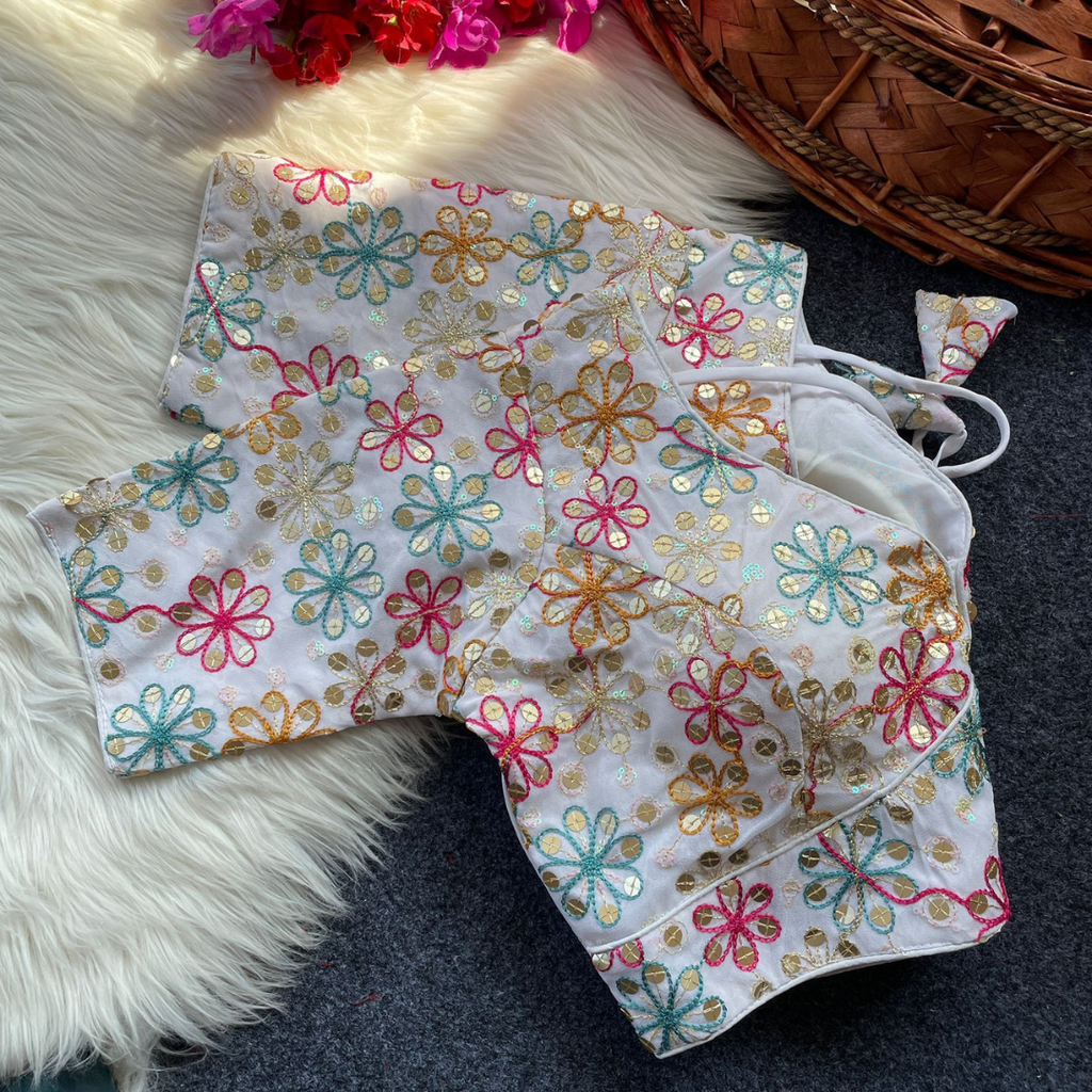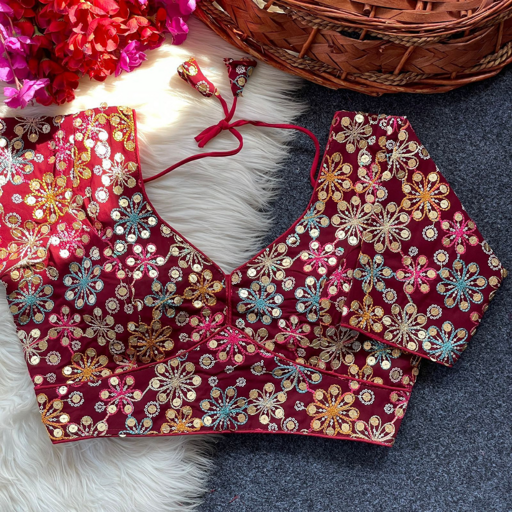 SABYASACHI NECK STYLE MULTI WORK WITH SEQUENCE WORK BLOUSE